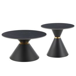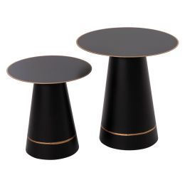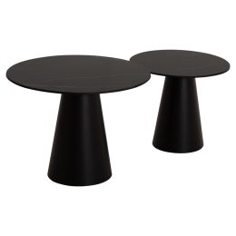 ΤΡΑΠΕΖΙA ΣΑΛΟΝΙΟΥ 2ΤΜΧ DIEN HM9926 ΜΕΤΑΛ.ΒΑΣΕΙΣ & ΚΕΡΑΜΙΚΟ TOP-ΜΑΥΡΟ Φ56.5 & Φ43.5 εκ.