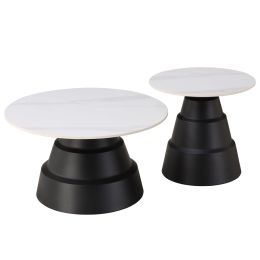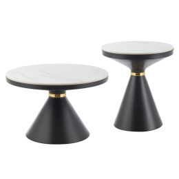 ΤΡΑΠΕΖΙΑ ΣΑΛΟΝΙΟΥ RIDGE HM18266.10 ΚΕΡΑΜΙΚΑ TOP ΜΕ ΟΨΗ ΜΑΥΡΟΥ-ΛΕΥΚΟΥ ΜΑΡΜΑΡΟΥ Φ50εκ & Φ70εκ