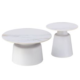 ΤΡΑΠΕΖΙΑ ΣΑΛΟΝΙΟΥ RINKON HM18263.01 ΚΕΡΑΜΙΚΑ TOP ΟΨΗ ΛΕΥΚΟΥ ΜΑΡΜΑΡΟΥ Φ50εκ & Φ70εκ