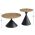 Αυτό το σετ τραπεζιών για το σαλόνι αποτελείται από 2 μεταλλικά τραπεζάκια στρογγυλά διαφορετικών μεγεθών. Οι βάσεις τους έχουν σχήμα κλεψύδρας σε ΜΑΥΡΟ ματ χρώμα, ενώ οι επιφάνειες είναι κατασκευασμένες από MDF σε φυσικό χρώμα. Ιδανικά τόσο για το σπίτι, όσο και για επαγγελματικούς χώρους.