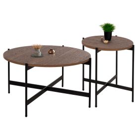 Αν ψάχνετε ένα σετ 2 τραπεζιών σαλονιού σε δύο διαφορετικές διαστάσεις, τότε το σετ RONDA θα σας ενθουσιάσει με το στυλ και την πρακτικότητά του. Πρόκειται για στρογγυλά τραπεζάκια με ιδιαίτερο χαρακτηριστικό ότι οι επιφάνειές τους στηρίζονται σε βάσεις με χιαστί διάταξη. Οι βάσεις είναι μεταλλικές σε ΜΑΥΡΟ χρώμα, ενώ οι επιφάνειες είναι κατασκευασμένες από MDF σε χρώμα ΚΑΡΥΔΙ.
