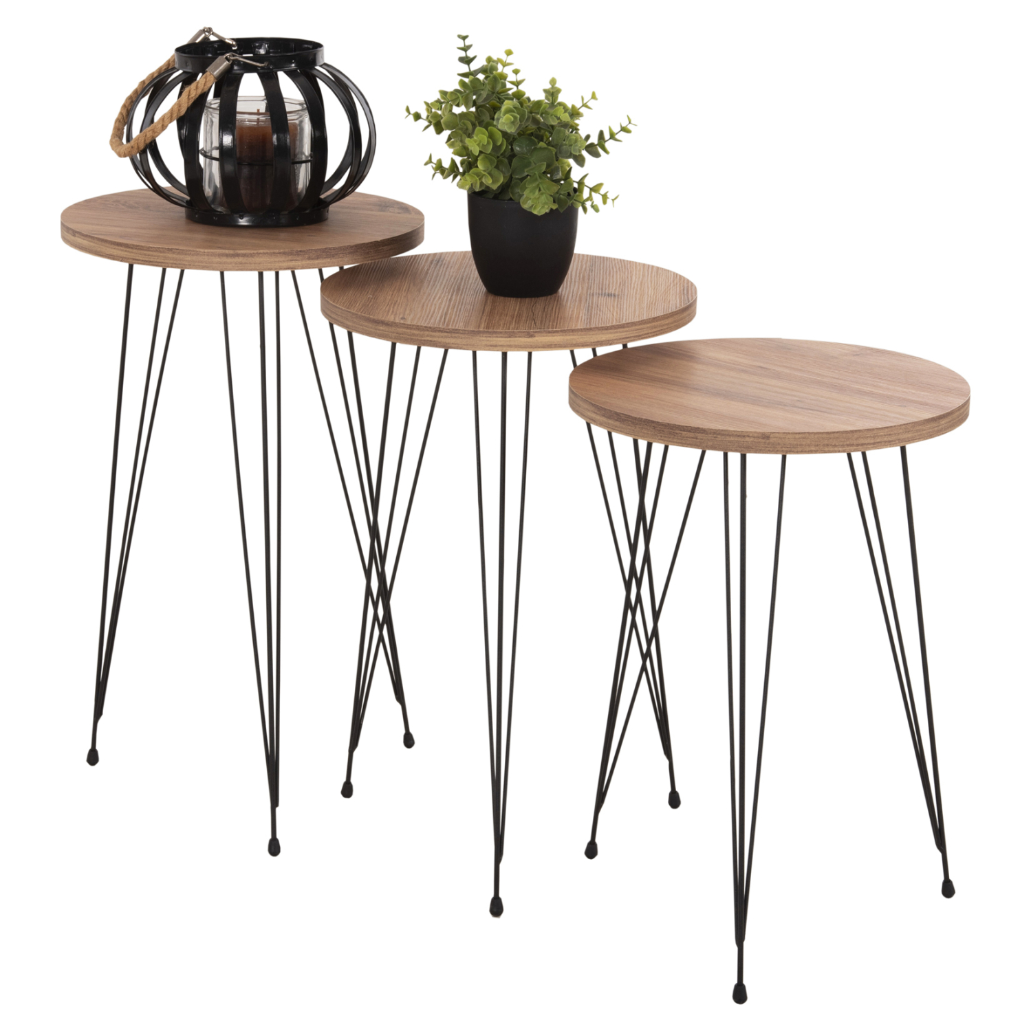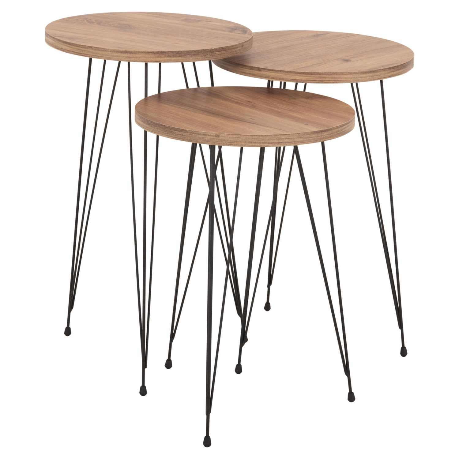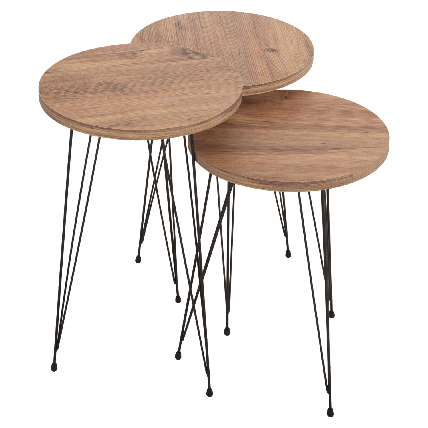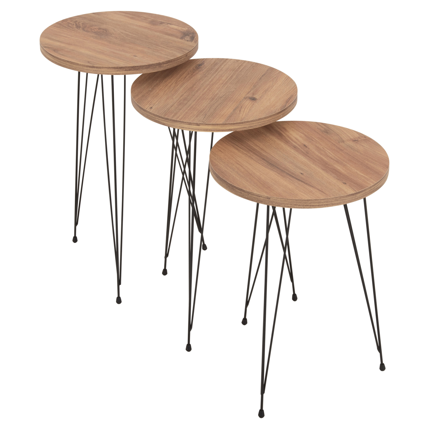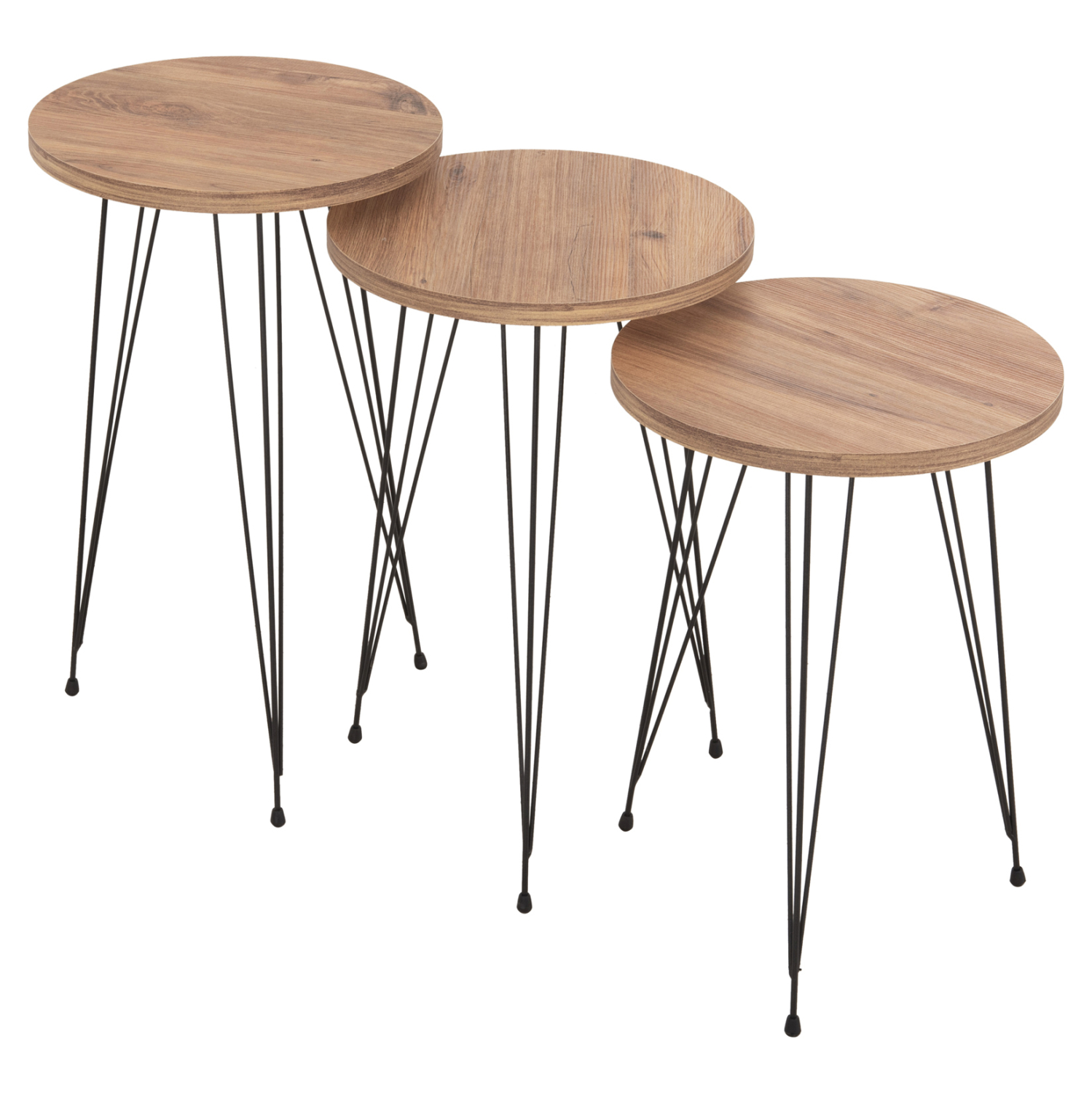 Τα 3 βοηθητικά στρογγυλά τραπεζάκια NISSA ήρθαν για να κλέψουν την παράσταση με το στυλ και την πρακτικότητά τους. Η επιφάνειά τους είναι από μελαμίνη 18mm σε χρώμα ΦΥΣΙΚΟ ΞΥΛΟΥ, ενώ τα πόδια τους είναι μεταλλικά σε ΜΑΥΡΟ χρώμα. Το χαρακτηριστικό τους είναι ότι έρχονται σε 3 διαφορετικά ύψη εξυπηρετώντας κάθε ανάγκη στον χώρο του σαλονιού.