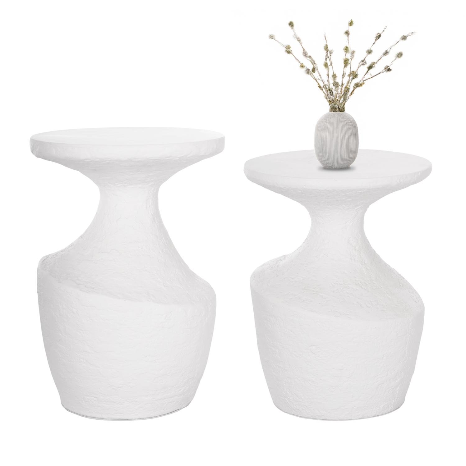 Τα 2 βοηθητικά τραπέζια σαλονιού REBON είναι στρογγυλά, διαφορετικών διαστάσεων και με μοντέρνο design. Είναι κατασκευασμένα εξολοκλήρου από Fiber Cement σε ΛΕΥΚΟ χρώμα με σαγρέ υφή που αποτελεί την τελευταία τάση στην εσωτερική διακόσμηση. Ιδανικό συμπλήρωμα τόσο για το σπίτι, όσο και για επαγγελματικούς χώρους, όπως ξενοδοχεία, AirBnB, κτλ.
