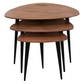 Σετ ΖΙΓΚΟΝ που αποτελείται από 3 τραπέζια σε ακανόνιστο τριγωνικό σχήμα με μαύρα μεταλλικά πόδια. Οι γωνίες των τραπεζιών είναι στρογγυλεμένες και το κόψιμό στις άκρες είναι φάλτσο. Το αισθητικό αποτέλεσμα είναι καταπληκτικό και είναι αναπόφευκτο να τραβήξει την προσοχή όλων, σε οποιοδήποτε χώρο κι αν τοποθετηθούν!