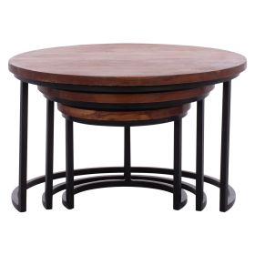 Σετ ΖΙΓΚΟΝ που αποτελείται από 3 τραπέζια σε ολοστρόγγυλο σχήμα με 3 μαύρα μεταλλικά πόδια σε διάταξη ημικυκλικής βάσης. Οι γωνίες των τραπεζιών είναι στρογγυλεμένες και το κόψιμό στις άκρες είναι κανονικό.