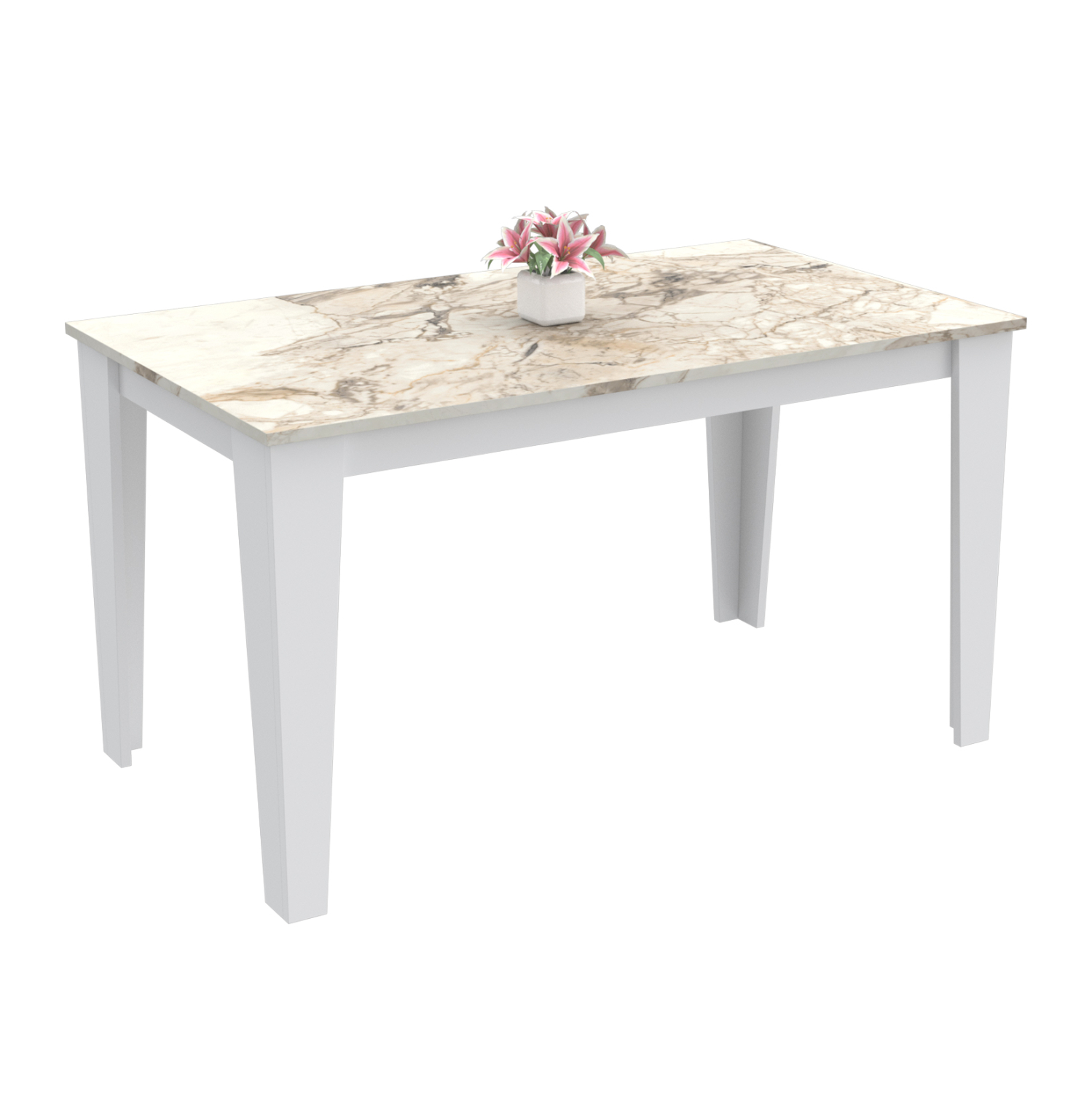 Το BORIS είναι ένα ορθογώνιο τραπέζι από μελαμίνη με επιφάνεια σε χρώμα ΛΕΥΚΟΥ ΜΑΡΜΑΡΟΥ. Τα 4 πόδια είναι επίσης από μελαμίνη σε ΛΕΥΚΟ χρώμα και ιδιαίτερα στιβαρά. Πρόκειται για ένα απλό τραπέζι σε κανονική διάσταση, που μπορεί να εξυπηρετήσει άνετα 4 τουλάχιστον άτομα.
