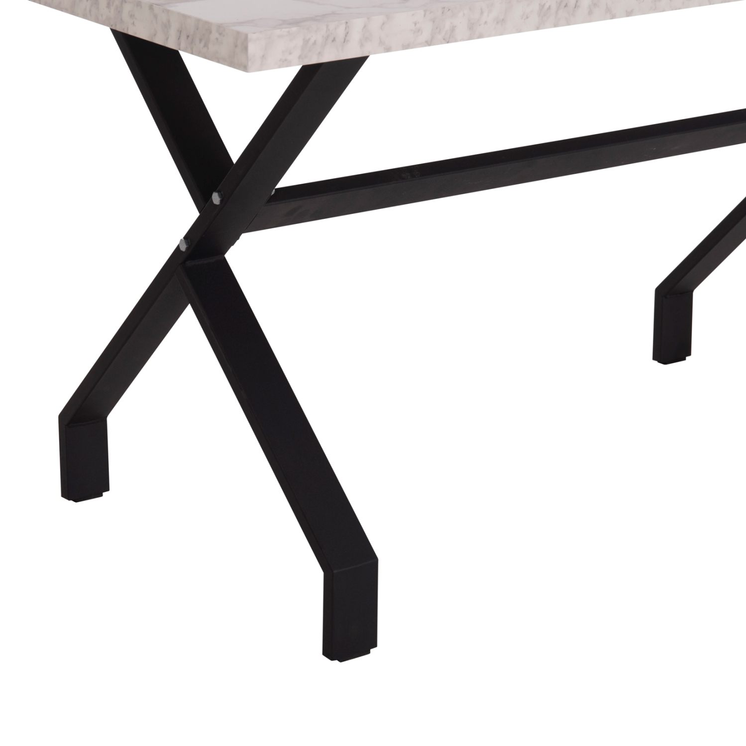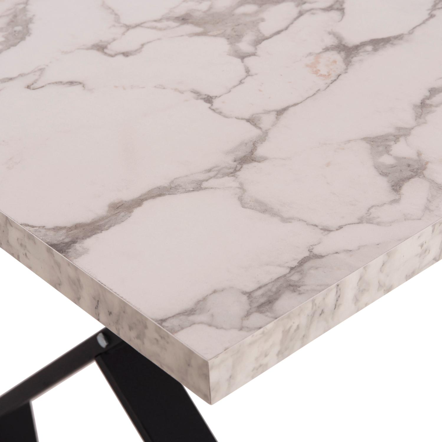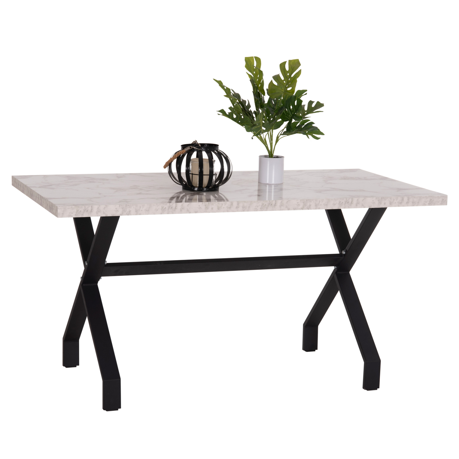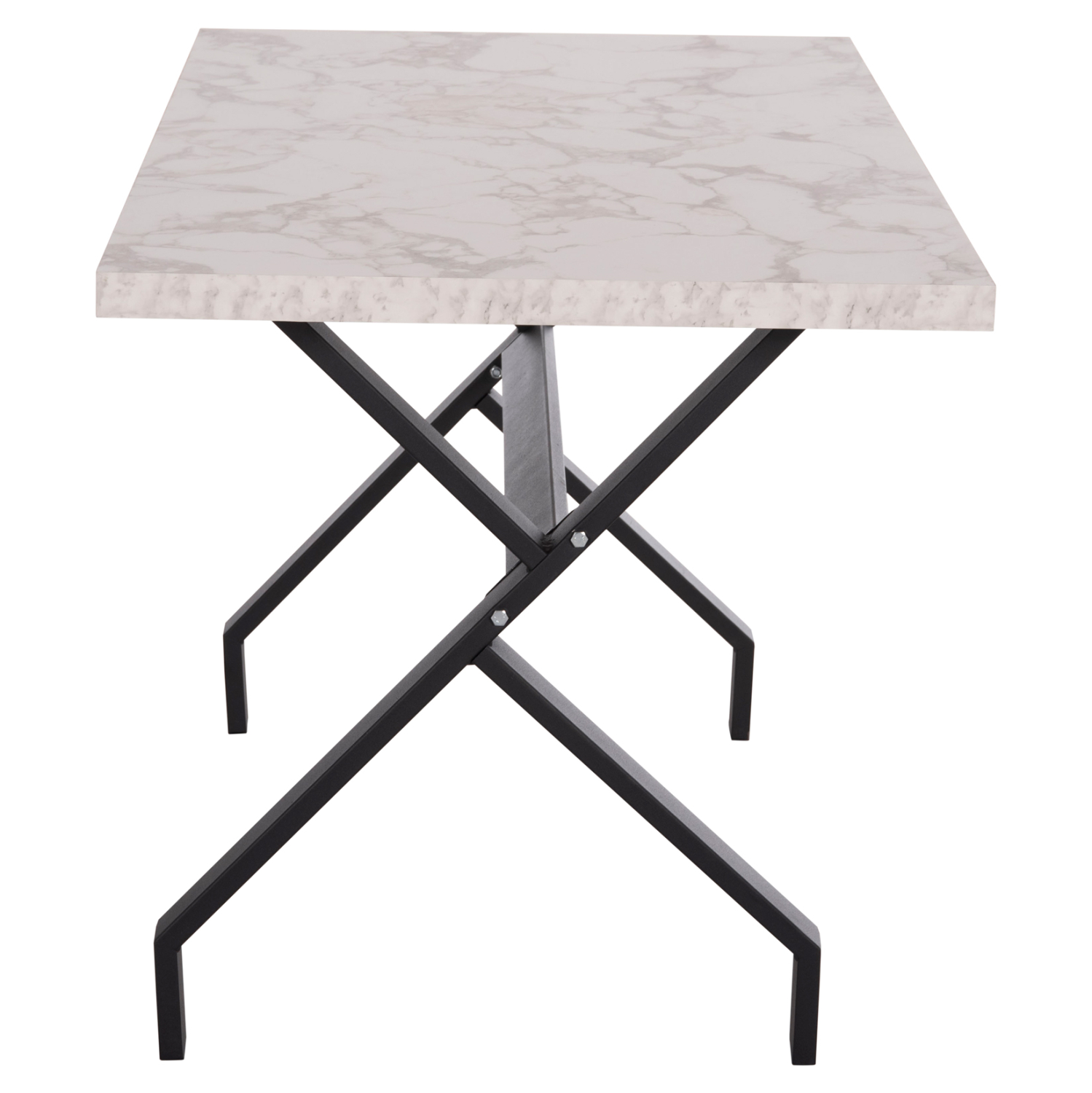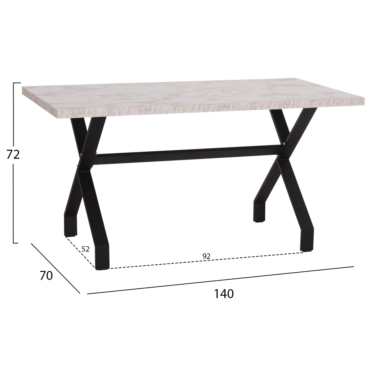 Το LANA είναι ένα ορθογώνιο τραπέζι με επιφάνεια από μελαμίνη σε χρώμα ΛΕΥΚΟ ΜΑΡΜΑΡΟ. Ξεχωρίζει για την όμορφη διάταξη που έχουν τα ΜΑΥΡΑ μεταλλικά πόδια. Πρόκειται για ένα απλό τραπέζι σε κανονική διάσταση, που μπορεί να εξυπηρετήσει άνετα 4 τουλάχιστον άτομα.