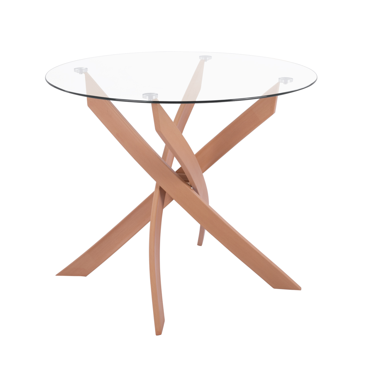Το JAFARU είναι ένα στρογγυλό τραπέζι με επιφάνεια από διάφανο γυαλί ασφαλείας και μεταλλικά πόδια με μοντέρνα γεωμετρία σε ματ χρώμα ΦΥΣΙΚΟΥ ξύλου. Τα τραπέζια ροτόντες είναι ιδιαιτέρως πρακτικά και όμορφα γιατί δεν έχουν κορυφές και «αρχηγούς», ούτε και γωνίες ή πόδια στις γωνίες που, πολλές φορές, δημιουργούν άβολες καταστάσεις. Με το JAFARU το μοντέρνο design συναντά την καθαρότητα του γυαλιού και δίνει μια καλλιτεχνική αίσθηση στον χώρο σας. Συνδυάστε τo με καρέκλες με την ίδια αισθητική και αποκτήστε την τραπεζαρία που πάντα επιθυμούσατε.