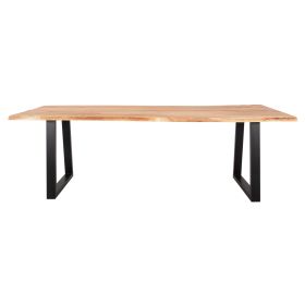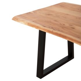 Ανακαλύψτε το μοναδικό μεγάλο χειροποίητο τραπέζι MONTANA με επιφάνεια από φυσικό μασίφ ξύλο ΑΚΑΚΙΑΣ σε ANOIXTO ΦΥΣΙΚΟ χρώμα. To σχήμα της επιφάνειας με πάχος 3,5 εκατοστά είναι ΑΚΑΝΟΝΙΣΤΟ ορθογώνιο και στηρίζεται σε δύο μαύρες μεταλλικές βάσεις με τραπεζοειδές σχήμα. Το μοντέρνο design συναντά την φύση και δίνει μια διαχρονική και ζεστή αίσθηση στον χώρο σας. Συνδυάστε τo με ένα ξύλινο παγκάκι ή καρέκλες με την ίδια αισθητική και αποκτήστε την τραπεζαρία που πάντα επιθυμούσατε.