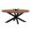 Ανακαλύψτε το μοναδικό χειροποίητο τραπέζι HM8483 με επιφάνεια από φυσικό μασίφ ξύλο MANGO. To σχήμα είναι έντονο οβάλ και στηρίζεται σε μια διάταξη μαύρων μεταλλικών ποδιών σε διάταξη διπλού χιαστί.