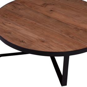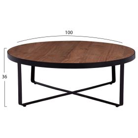 Το ΗΜ8461.11 είναι ένα χαμηλό στρογγυλό τραπέζι για το σαλόνι, με ικανοποιητικές διαστάσεις σε φυσικό χρώμα ξύλου. Η επιφάνεια του τραπεζιού μπαίνει σε μια στρογγυλή ΜΑΥΡΗ μεταλλική βάση που καταλήγει σε χιαστί πόδια. Αυτό το τραπέζι θα αναβαθμίσει αισθητικά το σαλόνι σας ενώ μπορεί να ταιριάξει με πολλά διαφορετικά στυλ και χρώματα στον τριγύρω χώρο. Οι υπάρχουσες ρωγμές ή αυτές που ενδέχεται να δημιουργηθούν με την πάροδο του χρόνου οφείλονται στην συστολή-διαστολή του ζωντανού οργανισμού που λέγεται μασίφ ξύλο, και δεν αποτελούν κατασκευαστικό ελάττωμα, δίνοντας πρωτοτυπία και μοναδικό design στο χώρο σας. Αυτά δεν αποτελούν ελάττωμα του προϊόντος.