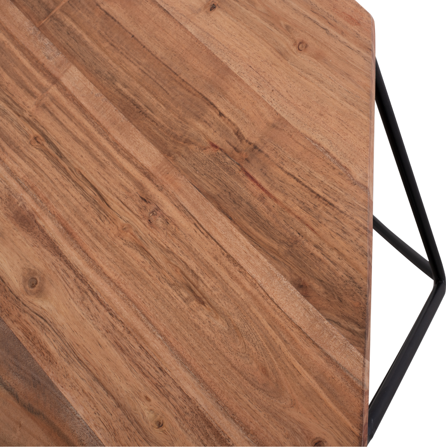 ΗΜ8777.11 τραπεζάκι σαλονιού----- Ανακαλύψτε το μοναδικό χειροποίητο τραπέζι HM8777.11 με επιφάνεια από φυσικά μασίφ ξύλα ΑΚΑΚΙΑΣ σε ΦΥΣΙΚΟ χρώμα. To σχήμα είναι πολυγωνικό και στηρίζεται σε ένα ανάλογο πολυγωνικό μαύρο μεταλλικό «πλέγμα». Το μοντέρνο design συναντά την φύση και δίνει μια διαχρονική και ζεστή αίσθηση στον χώρο σας.