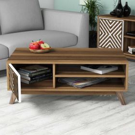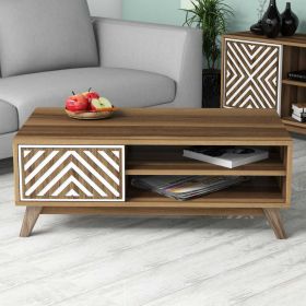 ΗΜ9502.03 τραπεζάκι σαλονιού----- Το τραπεζάκι αυτό είναι ένα πανέμορφο έπιπλο σε χρώμα καρυδί. Το πρακτικό του design θα αλλάξει την εικόνα του σαλονιού ή του καθιστικού σας προς το καλύτερο. Πρόκειται για μια κατασκευή με μια ικανοποιητικού μεγέθους επάνω επιφάνεια. Από κάτω υπάρχουν δύο ράφια και ένα ντουλαπάκι με ΛΕΥΚΟ πορτάκι. Η κομψότητα, η ποιότητα και το minimal πρακτικό design, είναι κάποια χαρακτηριστικά από το τραπέζι σαλονιού, που έχει φτιαχτεί για εσένα.