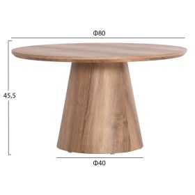 Το τραπέζι σαλονιού KARAN είναι στρογγυλό και χαμηλό σχετικά τραπέζι με κωνική βάση. Η επιφάνεια είναι επίπεδη και φαλτσοκομμένη προσδίδοντας μια όμορφη εικόνα στο τραπέζι. Ολόκληρο το τραπέζι είναι από MDF σε ΦΥΣΙΚΟ χρώμα ξύλου. Ιδανική επιλογή για το σπίτι αλλά και για επαγγελματικούς χώρους που μπορεί να χρειαστούν ένα τέτοιο έπιπλο.