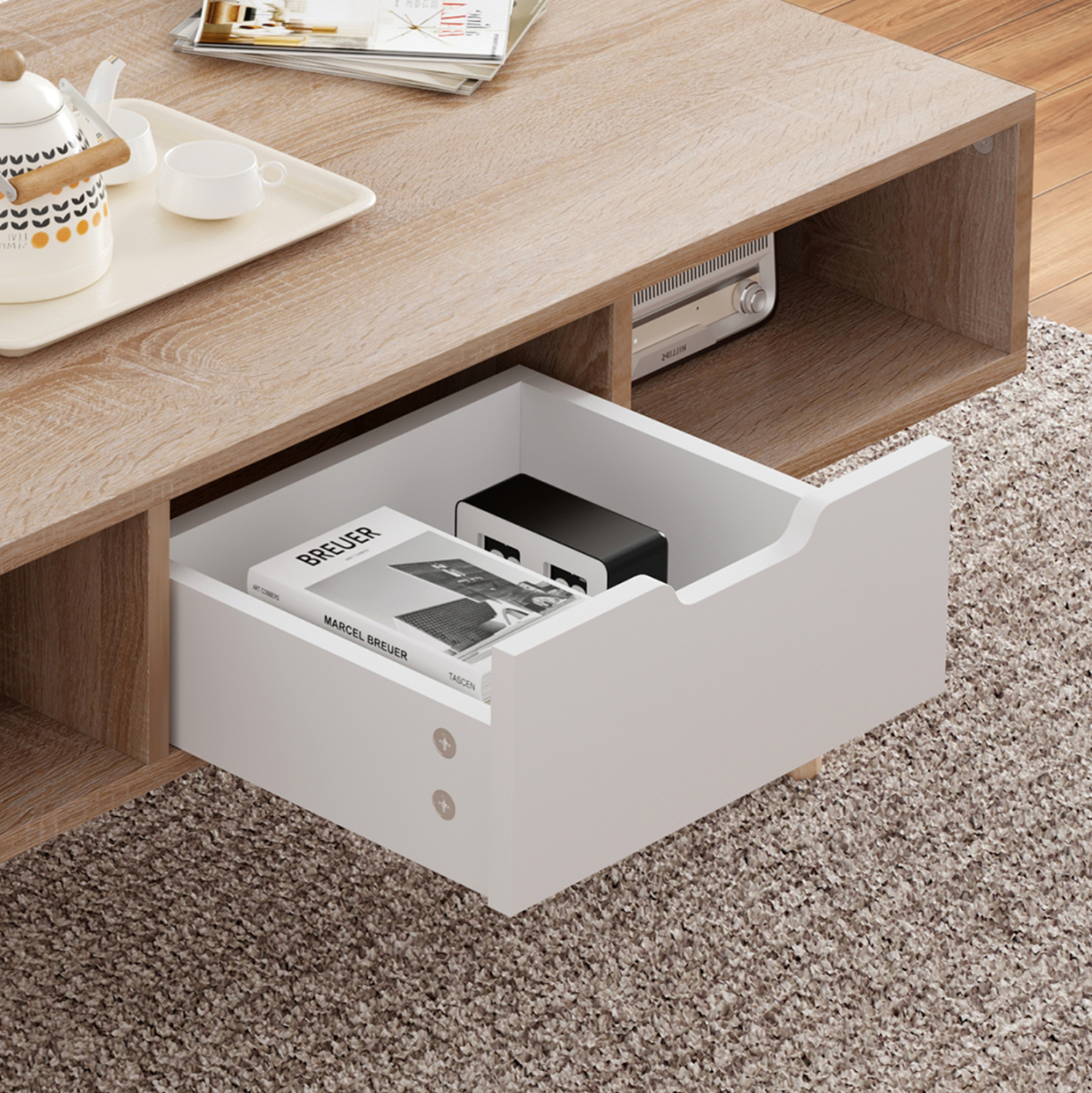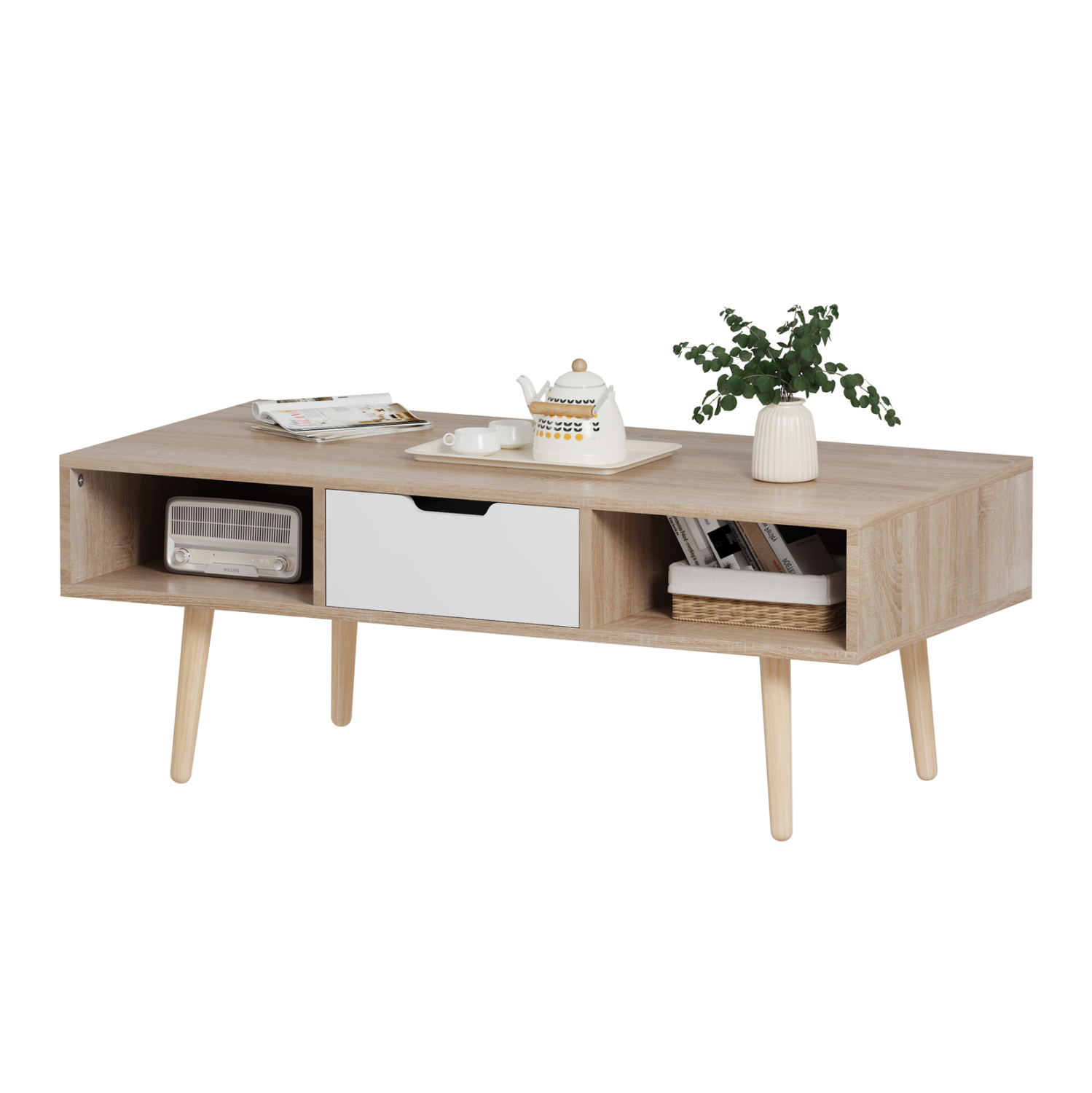 Το τραπεζάκι σαλονιού μελαμίνης KRENER είναι μια ποιοτική και όμορφη πρόταση για κάθε σαλόνι. Είναι κατασκευασμένο από μελαμίνη σε χρώμα SONAMA και διαθέτει ψηλά πόδια από μασίφ ξύλο πεύκου. Είναι λιτό και πέρα από την κύρια επιφάνειά του, διαθέτει 3 χώρους ακριβώς από κάτω. Ένα συρτάρι με χωνευτό χερούλι σε ΛΕΥΚΟ χρώμα στην μέση και 2 ανοιχτούς χώρους τοποθέτησης αντικειμένων δεξιά και αριστερά του συρταριού.