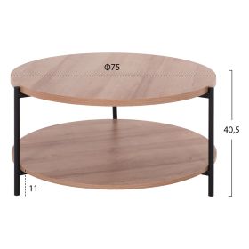 Το MATTEO είναι ένα όμορφο χαμηλό στρογγυλό τραπεζάκι μελαμίνης για το σαλόνι, σε ΟΑΚ χρώμα ξύλου. Το χαρακτηριστικό του είναι ότι διαθέτει 2 επιφάνειες οι οποίες στηρίζονται σε ΜΑΥΡΕΣ μεταλλικές χιαστί βάσεις που είναι ενωμένες με τα πόδια. Αυτό το τραπεζάκι θα αναβαθμίσει αισθητικά το σαλόνι σας ενώ μπορεί να ταιριάξει με πολλά διαφορετικά στυλ και χρώματα στον τριγύρω χώρο.