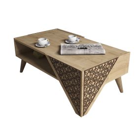 ΗΜ9498.01 τραπεζάκι σαλονιού----- Το τραπεζάκι αυτό είναι ένα όμορφο έπιπλο σε χρώμα ΟΑΚ. Το πανέμορφο design θα αλλάξει την εικόνα του σαλονιού ή του καθιστικού σας προς το καλύτερο. Πρόκειται για μια κατασκευή με μια ικανοποιητικού μεγέθους επάνω επιφάνεια. Από κάτω υπάρχει ανοιχτός αποθηκευτικός χώρος σαν δεύτερη επιφάνεια. Το χαρακτηριστικό, όμως, σε αυτό το τραπεζάκι είναι ότι σε δύο γωνίες δεν υπάρχουν τα κλασσικά πόδια αλλά όμορφες σκαλιστές (CNC Relief) κατασκευές. Η κομψότητα, η ποιότητα και το minimal μοντέρνο design χαρακτηρίζουν αυτό το τραπεζάκι, που έχει φτιαχτεί για εσένα.