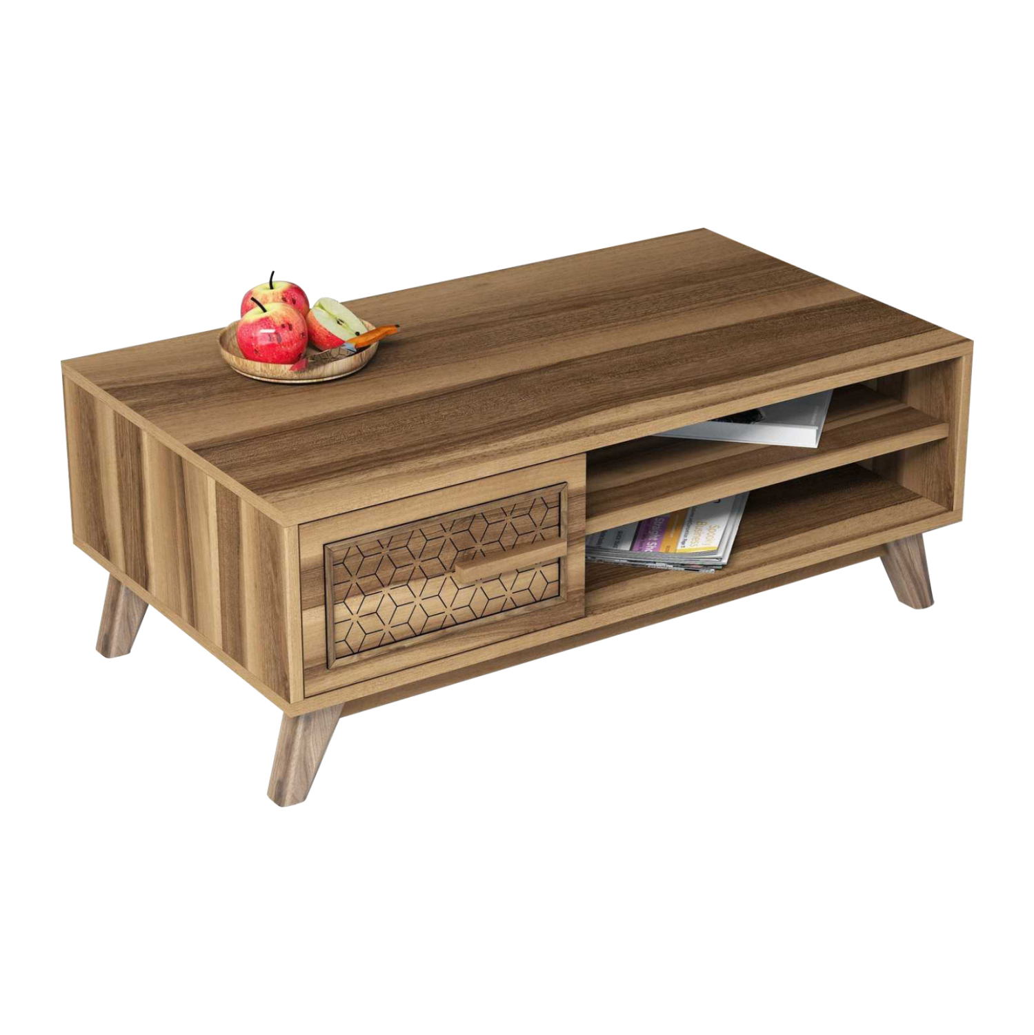 ΗΜ9497.01 τραπεζάκι σαλονιού----- Το τραπεζάκι αυτό είναι ένα πανέμορφο έπιπλο σε χρώμα καρυδί. Το πρακτικό του design θα αλλάξει την εικόνα του σαλονιού ή του καθιστικού σας προς το καλύτερο. Πρόκειται για μια κατασκευή με μια ικανοποιητικού μεγέθους επάνω επιφάνεια. Από κάτω υπάρχουν δύο ράφια και ένας ακόμα αποθηκευτικός χώρος με πορτάκι. Η κομψότητα, η ποιότητα και το minimal πρακτικό design, είναι κάποια χαρακτηριστικά από το τραπέζι σαλονιού, που έχει φτιαχτεί για εσένα.