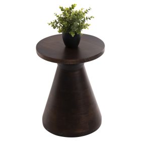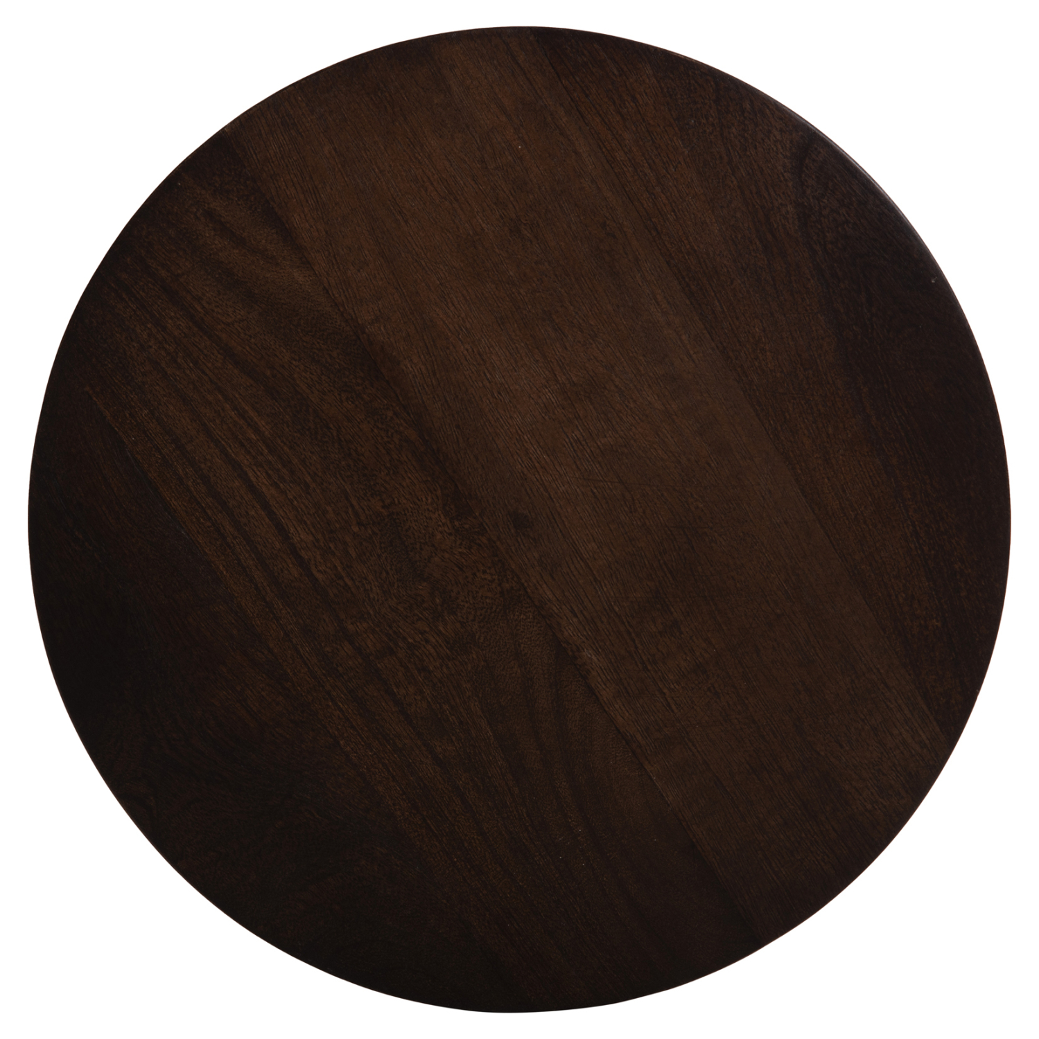 Το στρογγυλό τραπέζι σαλονιού FOSS που είναι εξολοκλήρου κατασκευασμένο από μασίφ ξύλο mango σε ΣΚΟΥΡΟ ΚΑΦΕ χρώμα μοιάζει με σκαμπό, χάρη στο κωνικό σχήμα της βάσης που καταλήγει στην στρογγυλή επιφάνεια. Ένα τραπέζι που θα εντυπωσιάσει με το σχήμα και το χρώμα του.