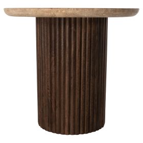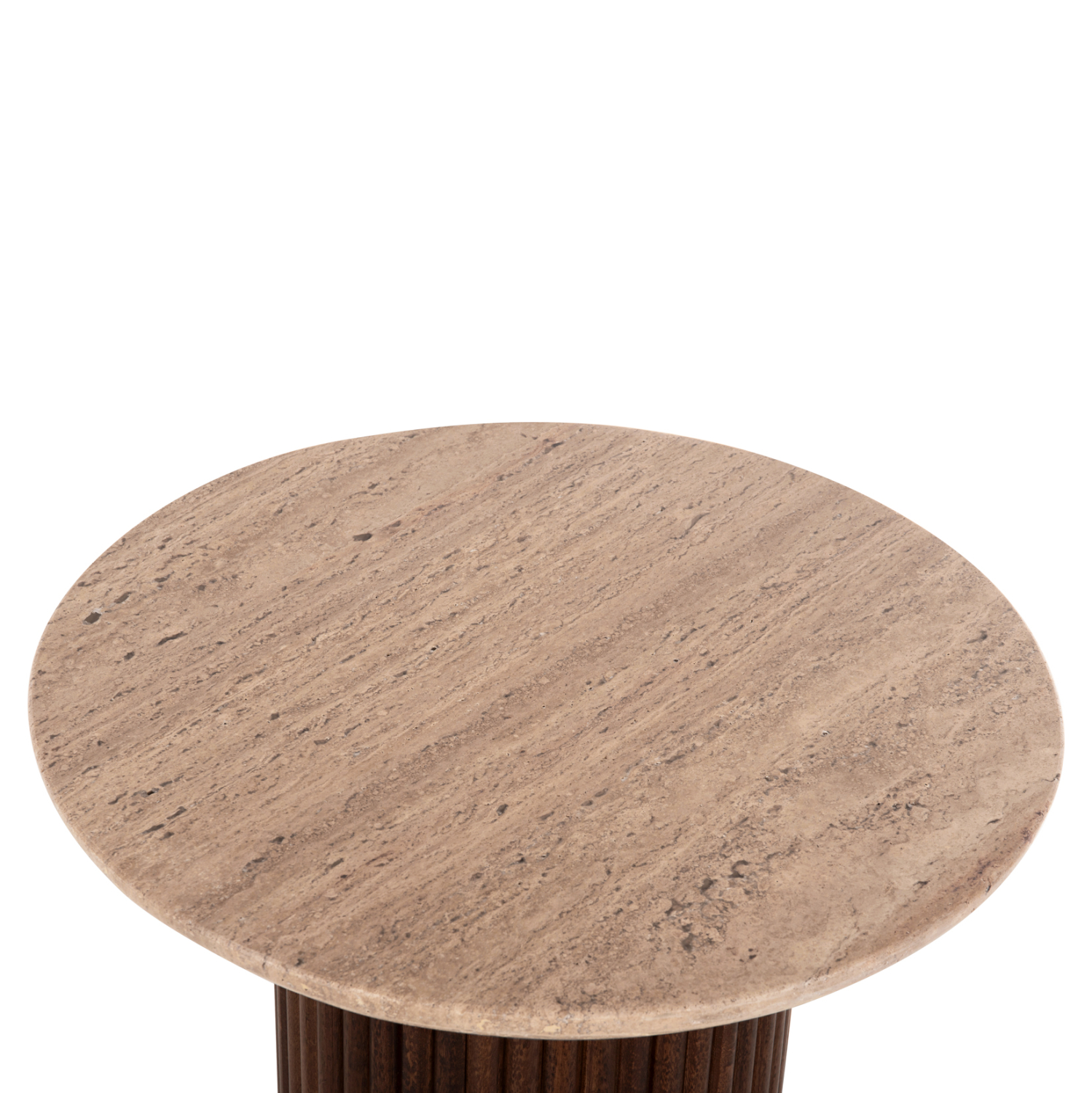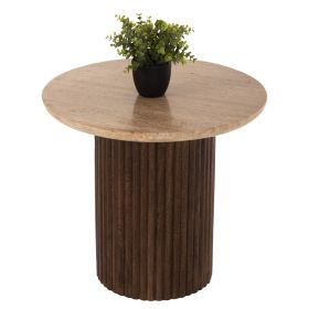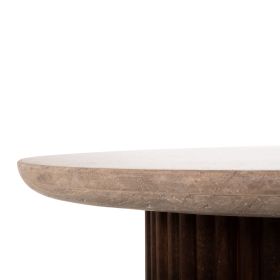 Το GLADYS είναι ένα στρογγυλό τραπέζι για το σαλόνι σε ΚΑΦΕ χρώμα με επιφάνεια από τραβερτίνα στο ΛΕΥΚΟ της χρώμα. Πρόκειται για ένα πολυτελέστατο όσο και πρακτικό έπιπλο για το σαλόνι σας που δεν θα περάσει απαρατήρητο!
