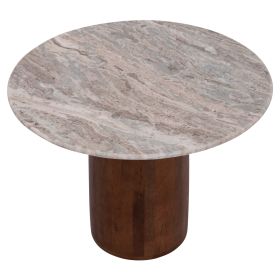 Το MALED είναι ένα κομψό στρογγυλό τραπέζι για το σαλόνι σε ικανοποιητική διάσταση με επιφάνεια από ΓΚΡΙ ΜΑΡΜΑΡΟ. Αυτή η επιφάνεια, βιδώνεται σε ένα μεταλλικό δίσκο, ο οποίος στηρίζεται σε μια κυλινδρική βάση από ποιοτικό ξύλο mango σε ΚΑΡΥΔΙ χρώμα. Αυτό το εντυπωσιακό τραπέζι θα αναβαθμίσει αισθητικά το σαλόνι σας ενώ μπορεί να ταιριάξει με πολλά διαφορετικά στυλ και χρώματα στον τριγύρω χώρο.