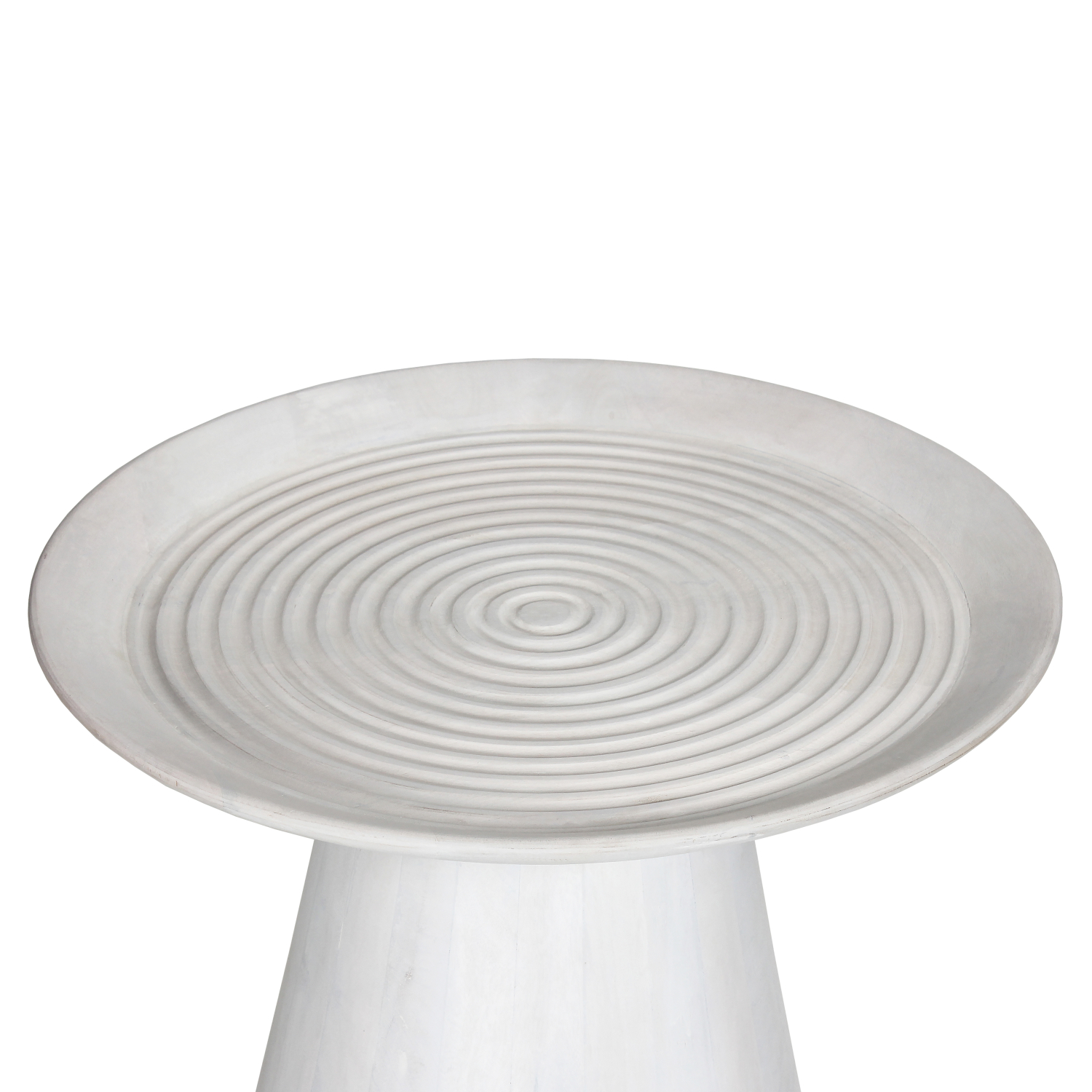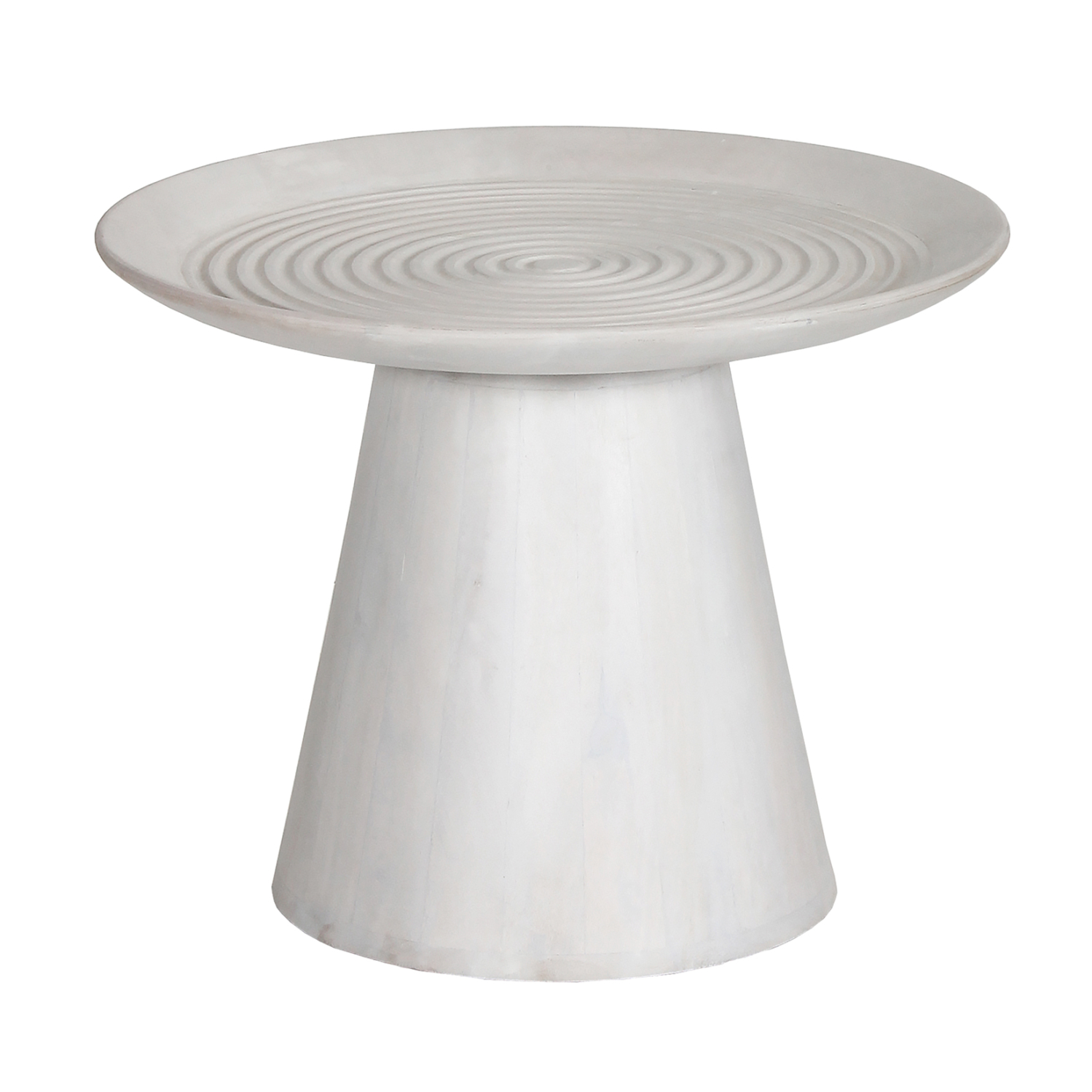 Το στρογγυλό τραπέζι σαλονιού ROSS που είναι εξολοκλήρου κατασκευασμένο από μασίφ ξύλο mango σε ΛΕΥΚΟ χρώμα έχει κωνικό σχήμα βάσης και καταλήγει στην στρογγυλή επιφάνεια με μορφή πιατέλας. Ένα τραπέζι που θα εντυπωσιάσει με το σχήμα και την πρακτικότητά του.