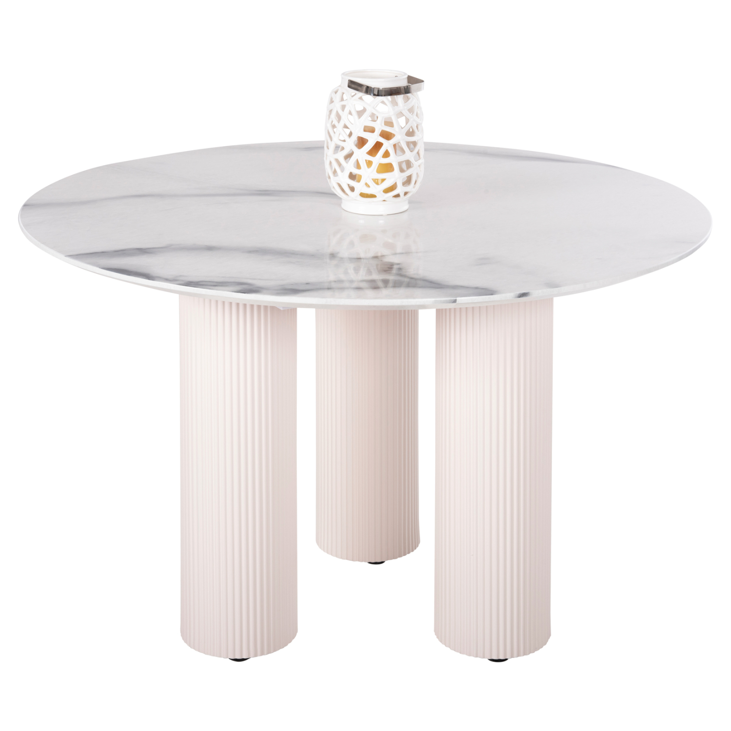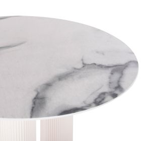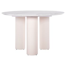 Το DORIK είναι ένα στρογγυλό τραπέζι για την τραπεζαρία, με επιφάνεια από MDF σε χρώμα ΛΕΥΚΟΥ ΜΑΡΜΑΡΟΥ. Τα 3 πόδια σε στυλ κολώνας είναι επίσης ΛΕΥΚΑ. Πρόκειται για ένα όμορφο τραπέζι σε ικανοποιητική διάσταση και ιδιαίτερα καλαίσθητο χρωματισμό, με αποτέλεσμα να μπορεί να ταιριάξει αισθητικά σχεδόν σε κάθε ανάλογο χώρο.