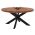 Ανακαλύψτε το μοναδικό χειροποίητο τραπέζι HM8485.11 με επιφάνεια από φυσικό μασίφ ξύλο MANGO. To σχήμα είναι στρογγυλό (ροτόντα) και στηρίζεται σε μαύρα μεταλλικά πόδια σε διάταξη διπλού χιαστί.