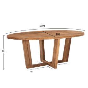 HM9558---Μεγάλο τραπέζι σε οβάλ σχήμα, κατασκευασμένο εξολοκλήρου από μασίφ ξύλα ΤΕΑΚ στο φυσικό τους χρώμα. Στηρίζεται σε μια χιαστί διάταξη ποδιών κατασκευασμένα από το ίδιο στιβαρό ξύλο. Ένα τραπέζι που θα ενθουσιάσει τους πάντες με το ικανοποιητικό μέγεθός του και την αντοχή του. Εσείς το μόνο που έχετε να κάνετε είναι να βρείτε τις καρέκλες που θα ταιριάξουν με αυτό το υπέροχο τραπέζι!