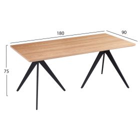 Το ΗΜ9451.03 είναι ένα ορθογώνιο τραπέζι για την τραπεζαρία, με επιφάνεια από MDF με καπλαμά από ξύλο φραξου σε χρώμα φυσικό και στυλ ρουστίκ. Η επιφάνεια αυτή είναι «φαλτσοκομμένη»(δεν είναι δηλαδή τετραγωνισμένη) και στηρίζεται σε δύο τρίποδες μαύρες μεταλλικές βάσεις. Πρόκειται για ένα πανέμορφο τραπέζι με όμορφη διχρωμία, με αποτέλεσμα να μπορεί να ταιριάξει αισθητικά σχεδόν σε κάθε ανάλογο χώρο.