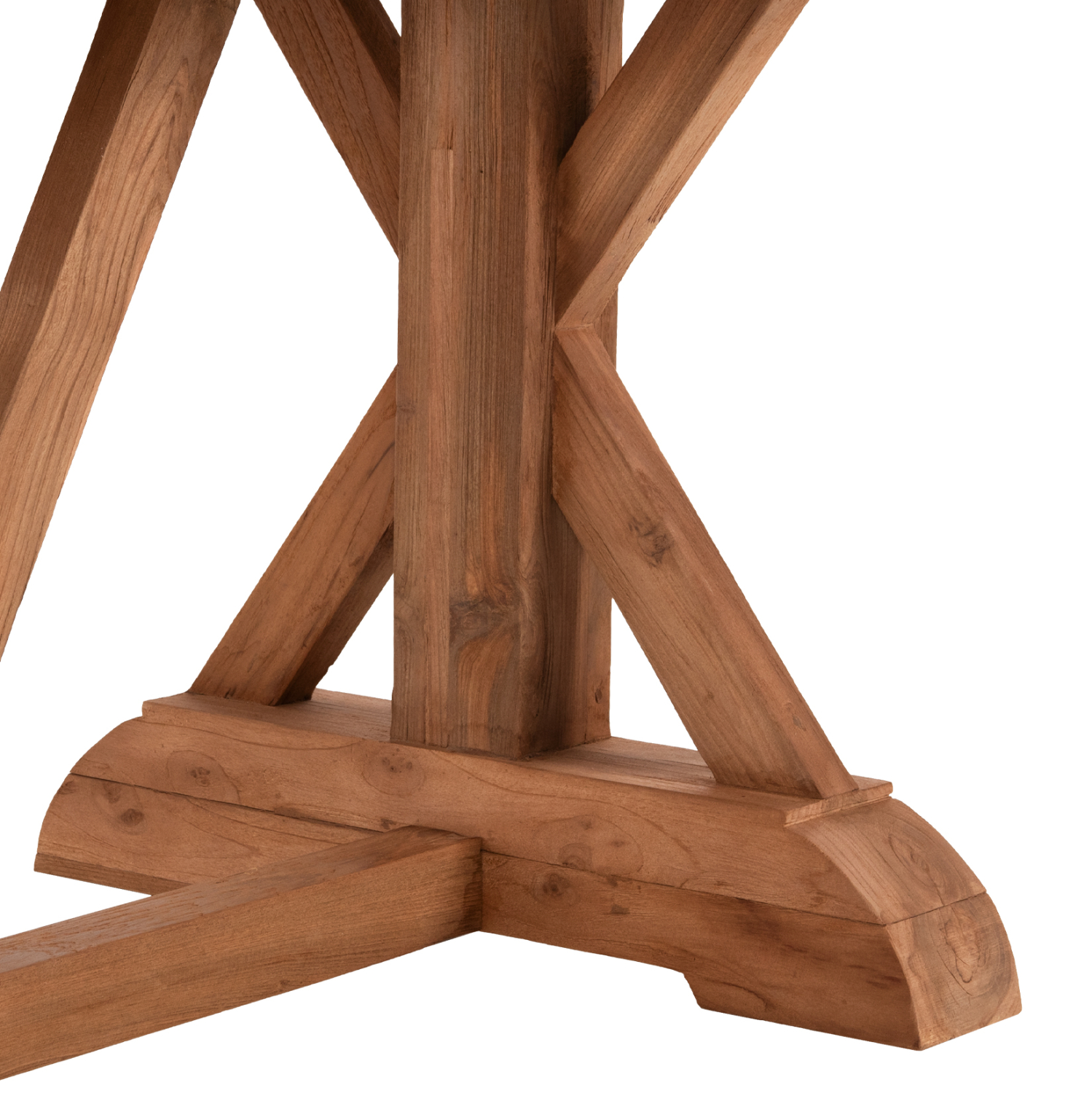 Το τραπέζι είναι κατασκευασμένο από μασίφ ανακυκλωμένο ξύλο ΤΕΑΚ. Το μασίφ συνιστά ένα είδος ξύλου, καθαρό και ατόφιο, και είναι η πιο ακριβή επιλογή σε είδος ξύλου και ξεχωρίζει για την διαχρονική αισθητική του. Το αποτέλεσμα που προσφέρει στον κάτοχό του είναι πραγματικά μοναδικό.