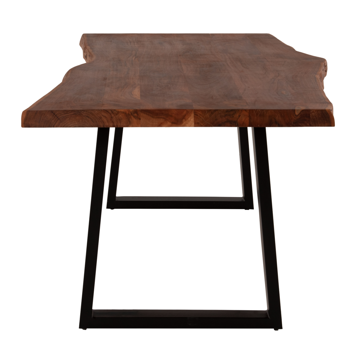 Ανακαλύψτε το μοναδικό μεγάλο χειροποίητο τραπέζι MONTANA με επιφάνεια από φυσικό μασίφ ξύλο ΑΚΑΚΙΑΣ σε ΦΥΣΙΚΟ χρώμα. To σχήμα της επιφάνειας με πάχος 4 εκατοστά είναι ΑΚΑΝΟΝΙΣΤΟ ορθογώνιο και στηρίζεται σε δύο μαύρες μεταλλικές βάσεις με τραπεζοειδές σχήμα. Το μοντέρνο design συναντά την φύση και δίνει μια διαχρονική και ζεστή αίσθηση στον χώρο σας.