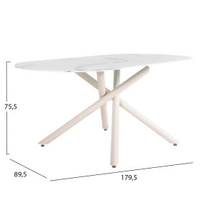 Το PRENTIS είναι ακόμα μια προσθήκη στην πλούσια γκάμα μας. Πρόκειται ένα μακρύ οβάλ τραπέζι τραπεζαρίας με κεραμική επιφάνεια από γυαλί «δουλεμένο» με τέτοιο τρόπο ώστε να δίνει την εντύπωση του ΛΕΥΚΟΥ ΜΑΡΜΑΡΟΥ. Η επιφάνεια αυτή είναι μονταρισμένη σε 4 ΛΕΥΚΕΣ μεταλλικές δοκούς με μοντέρνα διάταξη. Το συγκεκριμένο τραπέζι θα αποτελέσει σημείο αναφοράς σε οποιοδήποτε χώρο τραπεζαρίας ή εστίασης κι αν τοποθετηθεί.