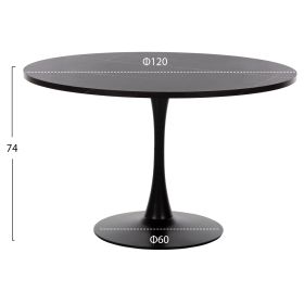 ΗΜ9422.02--Σας παρουσιάζουμε ένα μοντέρνο στρογγυλό τραπέζι για τραπεζαρία (ροτόντα δηλαδή), με επιφάνεια μελαμίνης σε ΜΑΥΡΟ ΜΑΡΜΑΡΟ χρώμα. Η επιφάνεια στηρίζεται σε μια μεταλλική ΜΑΥΡΗ κολώνα κυλινδρική η οποία έχει τις κατάλληλες διαστάσεις για να υποστηρίξει επαρκώς το τραπέζι. Τα τραπέζια ροτόντες είναι ιδιαιτέρως πρακτικά και όμορφα γιατί δεν έχουν κορυφές και «αρχηγούς», ούτε και γωνίες ή πόδια που, πολλές φορές, δημιουργούν άβολες καταστάσεις. Τέλος, η συγκεκριμένη ροτόντα είναι σε ικανοποιητική διάσταση πράγμα που την καθιστά σημείο αναφοράς για την τραπεζαρία σας.