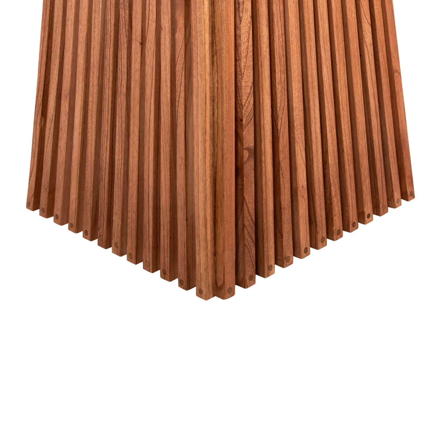Το FRANTZ είναι ένα τετράγωνο τραπέζι για την τραπεζαρία, με ικανοποιητικές διαστάσεις σε φυσικό χρώμα ξύλου. Το τραπέζι στηρίζεται σε μια ξύλινη κατασκευή στο κέντρο με πολλές δοκούς σε πυραμιδωτή διάταξη που ενώνονται μεταξύ τους στην εσωτερική πλευρά. Αυτό το τραπέζι θα αναβαθμίσει αισθητικά την τραπεζαρία σας ενώ μπορεί να ταιριάξει με πολλά διαφορετικά στυλ και χρώματα στον τριγύρω χώρο, όπως και με διαφορετικά στυλ καρέκλας.