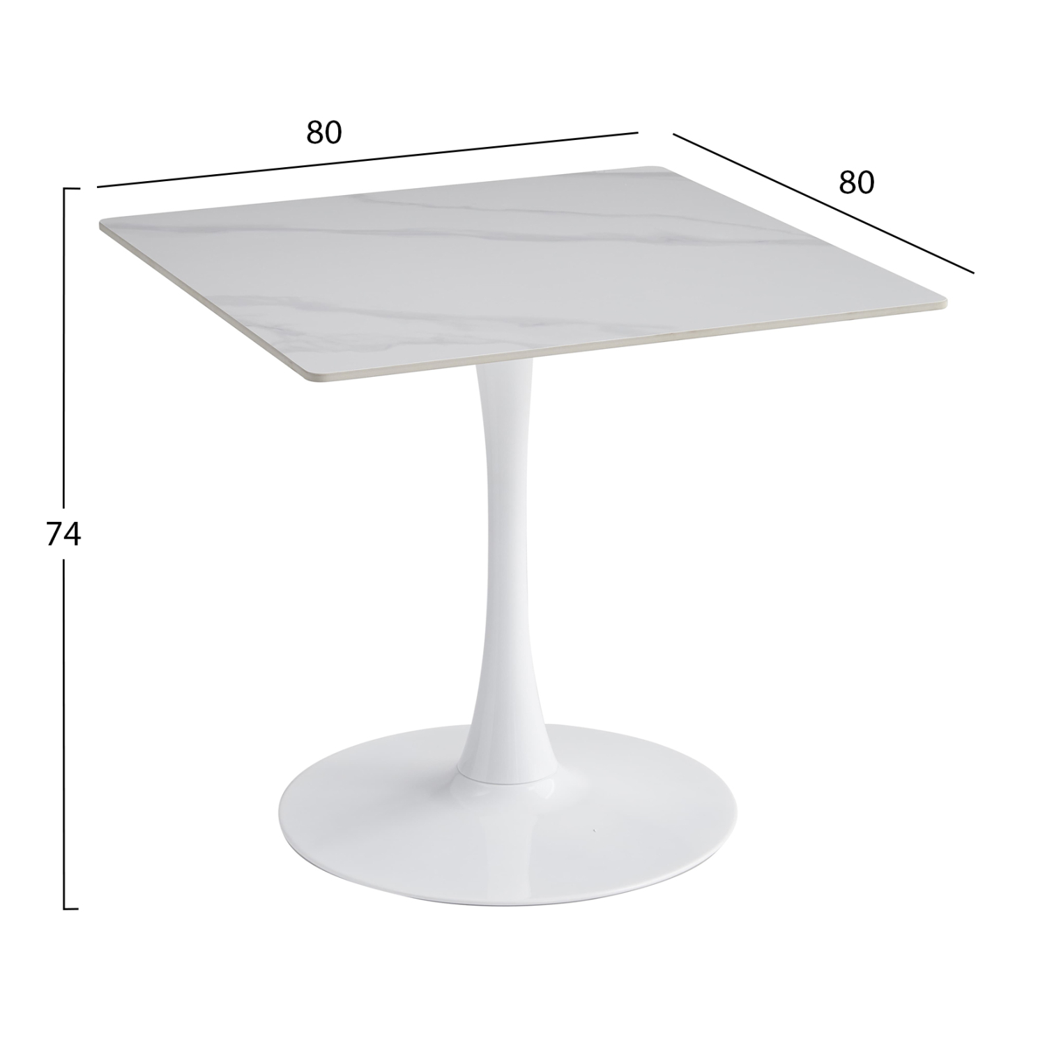 Το TETRAN είναι ένα όμορφο τραπέζι που θα κοσμήσει την τραπεζαρία σας. Διαθέτει τετράγωνη επιφάνεια από γυαλιστερό sintered stone σε χρωματισμό SNOW WHITE, ενώ στηρίζεται σε μια στρογγυλή βάση δαπέδου και μια κολώνα από μέταλλο σε ΛΕΥΚΟ χρώμα. Ιδανικό τόσο για το σπίτι, όσο και για επαγγελματικούς χώρους.