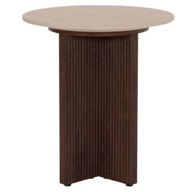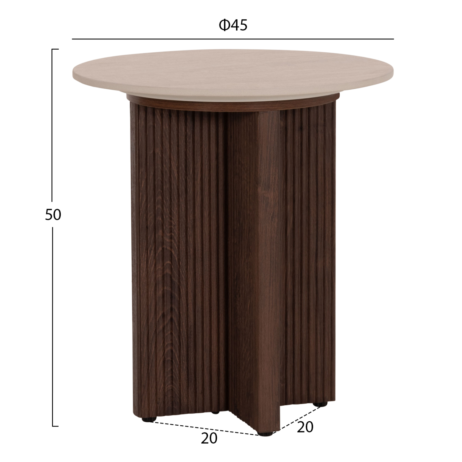 Το βοηθητικό τραπέζι SKY είναι στρογγυλό και αποτελεί νέα προσθήκη στην γκάμα μας. Η επίπεδη επιφάνειά του είναι κεραμική σε χρωματισμό TRAVERTINE STONE, ενώ η βάση του είναι σταυρωτή κατασκευασμένη εξολοκλήρου από MDF σε καφέ χρώμα, με όμορφες πτυχώσεις.