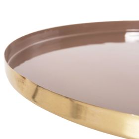 Το βοηθητικό τραπεζάκι UTRI για το σαλόνι είναι μια από τις νέες προσθήκες στην γκάμα μας. Πρόκειται για ένα μεταλλικό τραπεζάκι στρογγυλό με ψηλό λαιμό σε ΜΠΕΖ χρώμα. Το χρώμα του είναι ΣΟΜΟΝ όπως και η επιφάνεια. Η ιδιαιτερότητα αυτού του τραπεζιού είναι ότι η περίμετρος της επιφάνειας είναι υπερυψωμένη και μοιάζει με πιάτο. Ιδανικό τόσο για το σπίτι, όσο και για επαγγελματικούς χώρους.