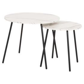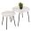 Τα τραπεζάκια ζιγκόν CUPPER θα σας ενθουσιάσουν με το στυλ και την πρακτικότητά τους. Μπορείτε να δημιουργήσετε πρωτότυπες διακοσμητικές συνθέσεις, δίνοντας νέα πνοή στον χώρο σας με αυτό το σετ. Πρόκειται για 2 στρογγυλά τραπέζια, ένα ψηλότερο κι ένα πιο κοντό που αποθηκεύεται κάτω από το ψηλό. Τα πόδια είναι μεταλλικά σε μαύρο χρώμα, ενώ οι επιφάνειές τους είναι σε χρώμα ΛΕΥΚΟ ΜΑΡΜΑΡΟ.