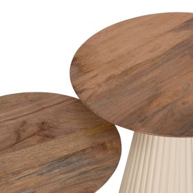 Το σετ 2 τραπεζιών FOLDY για το σαλόνι είναι άλλη μια προσθήκη στην γκάμα μας. Πρόκειται για 2 τραπεζάκια με μεταλλική κωνική βάση σε ΕΚΡΟΥ χρώμα, με όμορφο στυλ. Οι επιφάνειες είναι στρογγυλές από ξύλο MANGO στο ΦΥΣΙΚΟ του χρώμα. Ιδανικά τόσο για το σπίτι, όσο και για επαγγελματικούς χώρους.