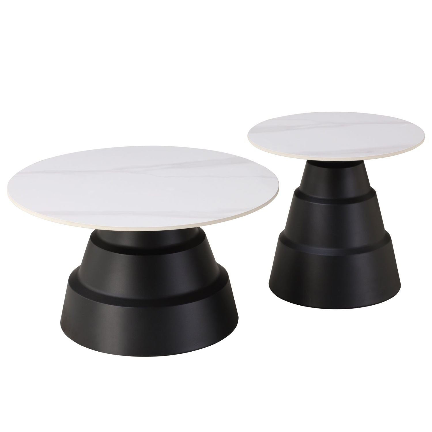 Το σετ 2 τραπεζιών LIDOK για το σαλόνι είναι η νεότερη προσθήκη στην γκάμα μας. Πρόκειται για 2 μεταλλικά τραπεζάκια στρογγυλά διαφορετικών μεγεθών με κωνική βάση, σε ΜΑΥΡΟ χρώμα. Οι επιφάνειες είναι λείες κεραμικές με όψη ΛΕΥΚΟΥ μαρμάρου. Ιδανικά τόσο για το σπίτι, όσο και για επαγγελματικούς χώρους.