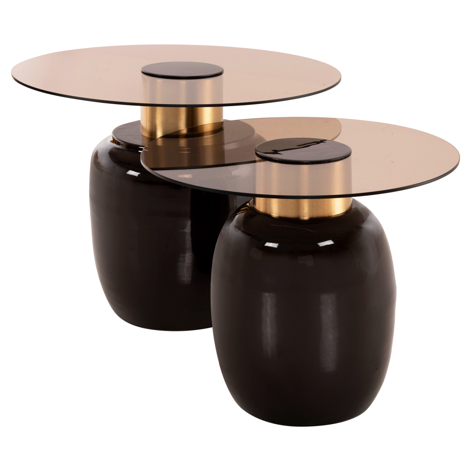 Το σετ 2 τραπεζιών FRYN για το σαλόνι είναι μια από τις νέες προσθήκες στην γκάμα μας. Πρόκειται για 2 τραπεζάκια στρογγυλά με κυλινδρική βάση και μεταλλικά. Το χρώμα τους είναι ΚΑΦΕ ενώ ο «λαιμός» είναι σε χρυσό χρώμα. Οι επιφάνειες είναι γυάλινες, με το γυαλί να έχει μια ελαφριά καφέ απόχρωση. Η ιδιαιτερότητα αυτών των τραπεζιών είναι οι γυαλιστερές επιφάνειες που προσδίδουν μια αίσθηση καθαρότητας και πολυτέλειας στο σαλόνι σας. Ιδανικά τόσο για το σπίτι, όσο και για επαγγελματικούς χώρους.