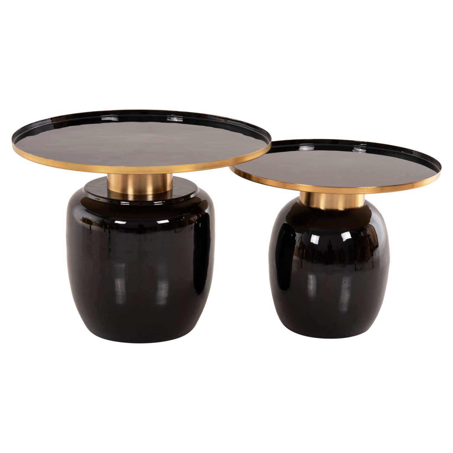 Το σετ 2 τραπεζιών FRYNX για το σαλόνι είναι μια από τις νέες προσθήκες στην γκάμα μας. Πρόκειται για 2 τραπεζάκια στρογγυλά με κυλινδρική βάση και μεταλλικά. Το χρώμα τους είναι ΜΑΥΡΟ όπως και οι επιφάνειες, ενώ ο «λαιμός» είναι σε χρυσό χρώμα. Η ιδιαιτερότητα αυτών των τραπεζιών είναι οι γυαλιστερές επιφάνειες που προσδίδουν μια αίσθηση καθαρότητας και πολυτέλειας στο σαλόνι σας. Ιδανικά τόσο για το σπίτι, όσο και για επαγγελματικούς χώρους.