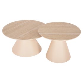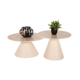 Το σετ 2 τραπεζιών ΝΑΝΖΑ για το σαλόνι είναι μια από τις νέες προσθήκες στην γκάμα μας. Πρόκειται για 2 τραπεζάκια στρογγυλά με κωνική βάση και μεταλλικά. Το χρώμα τους είναι ΚΡΕΜ. Οι επιφάνειες είναι κεραμικές, σε ΜΠΕΖ χρώμα. Ιδανικά τόσο για το σπίτι, όσο και για επαγγελματικούς χώρους.