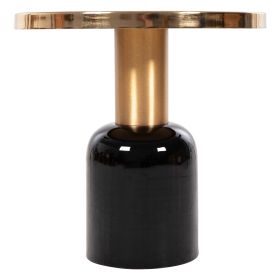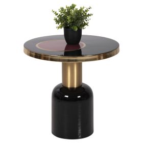 Το βοηθητικό τραπεζάκι ERODE για το σαλόνι είναι μια από τις νέες προσθήκες στην γκάμα μας. Πρόκειται για ένα μεταλλικό τραπεζάκι στρογγυλό με χαμηλή κυλινδρική βάση και ψηλό λαιμό που την συνδέει με την στρογγυλή επιφάνεια. Ο λαιμός και η περίμετρος της επιφάνειας είναι σε ΧΡΥΣΟ χρώμα ενώ η βάση και η επιφάνεια είναι σε χρώμα ΜΑΥΡΟ με ΚΕΡΑΣΙ λεπτομέρεια, που δίνουν ένα πολύ ιδιαίτερο αισθητικό αποτέλεσμα. Ιδανικό τόσο για το σπίτι, όσο και για επαγγελματικούς χώρους.