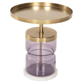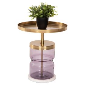 Ανακαλύψτε το βοηθητικό τραπεζάκι HAILEY. Πρόκειται για ένα τραπεζάκι με γυάλινη κυλινδρική βάση σε διαφανές ΜΟΒ χρώμα και μεταλλικό «λαιμό» και top σε γυαλιστερό ΧΡΥΣΟ χρώμα. Το τραπεζάκι δίνει μια αίσθηση πολυτέλειας και είναι ιδανικό τόσο για το σπίτι, όσο και για επαγγελματικούς χώρους.