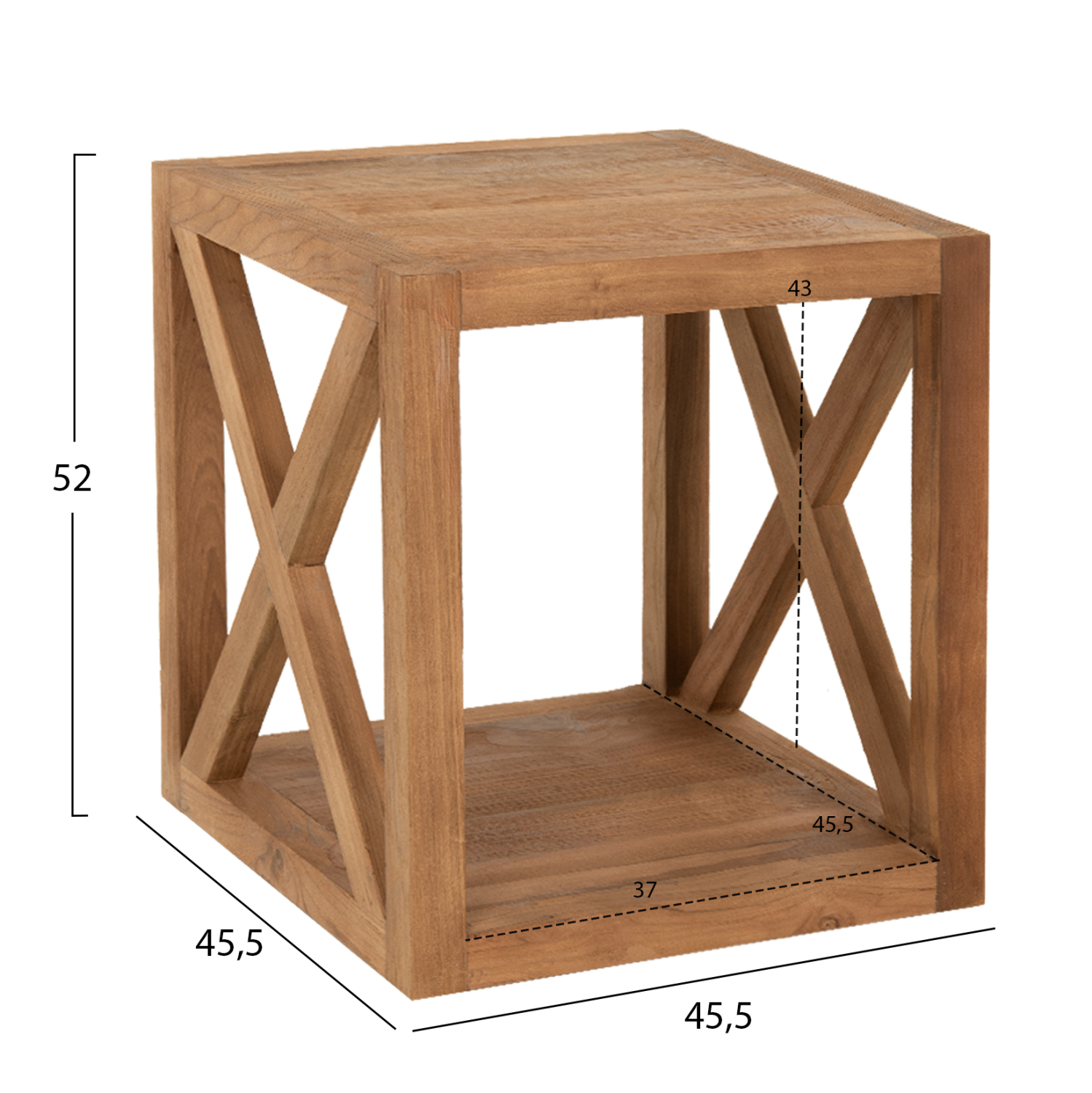 Το NYM είναι ένα βοηθητικό τραπεζάκι σε σχήμα κύβου για κάθε χώρο, σε φυσικό χρώμα ξύλου. Αυτό το τραπέζι θα αναβαθμίσει αισθητικά το σαλόνι σας ενώ μπορεί να ταιριάξει με πολλά διαφορετικά στυλ και χρώματα στον τριγύρω χώρο. Είναι κατασκευασμένο από μασίφ φυσικά ξύλα, ενώ το εσωτερικό του κύβου είναι ανοιχτό για εύκολη και πρακτική τοποθέτηση αντικειμένων. Οι υπάρχουσες ρωγμές ή αυτές που ενδέχεται να δημιουργηθούν με την πάροδο του χρόνου οφείλονται στην συστολή-διαστολή του ζωντανού οργανισμού που λέγεται μασίφ ξύλο, και δεν αποτελούν κατασκευαστικό ελάττωμα, δίνοντας πρωτοτυπία και μοναδικό design στο χώρο σας. Αυτά δεν αποτελούν ελάττωμα του προϊόντος.