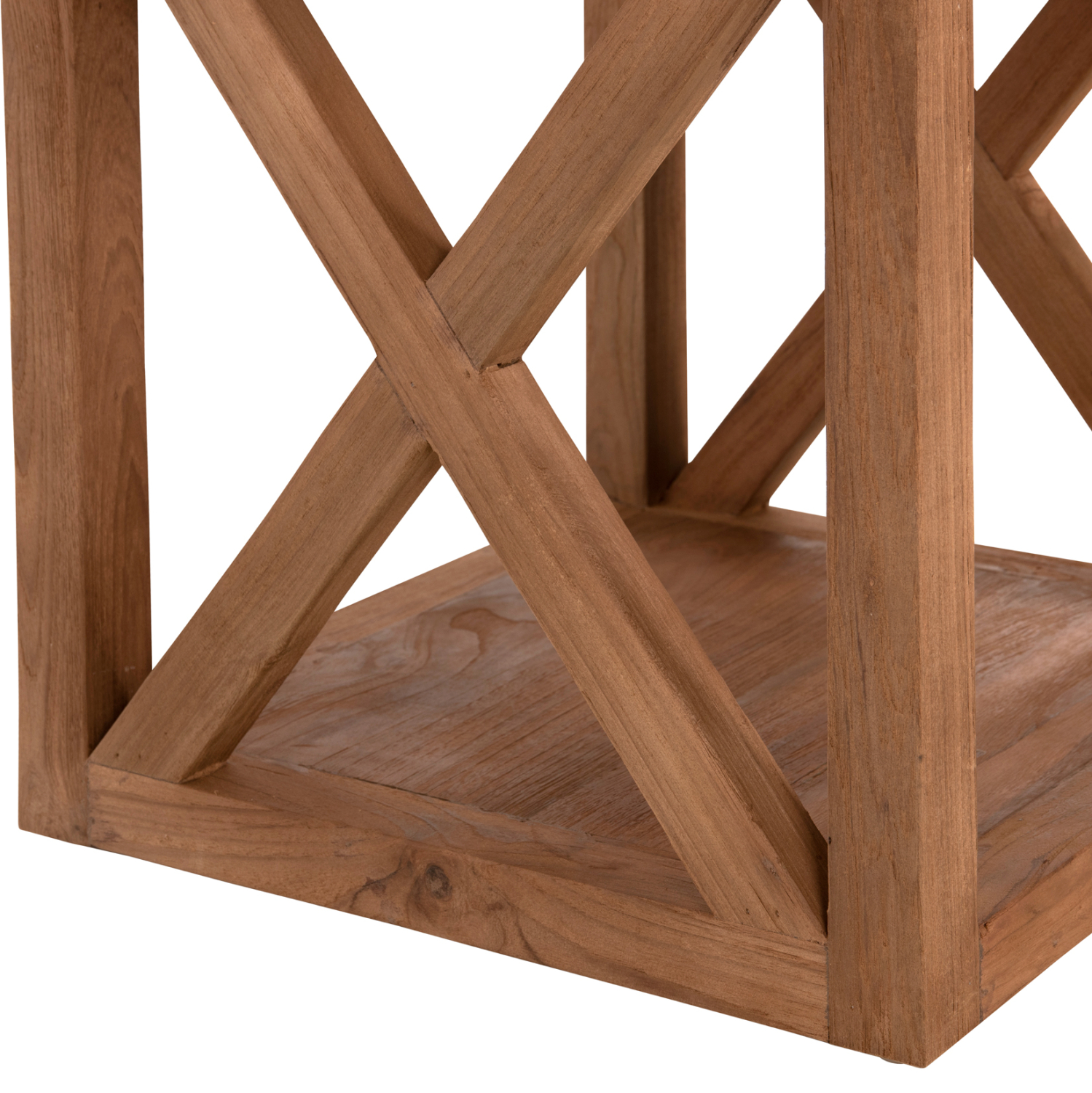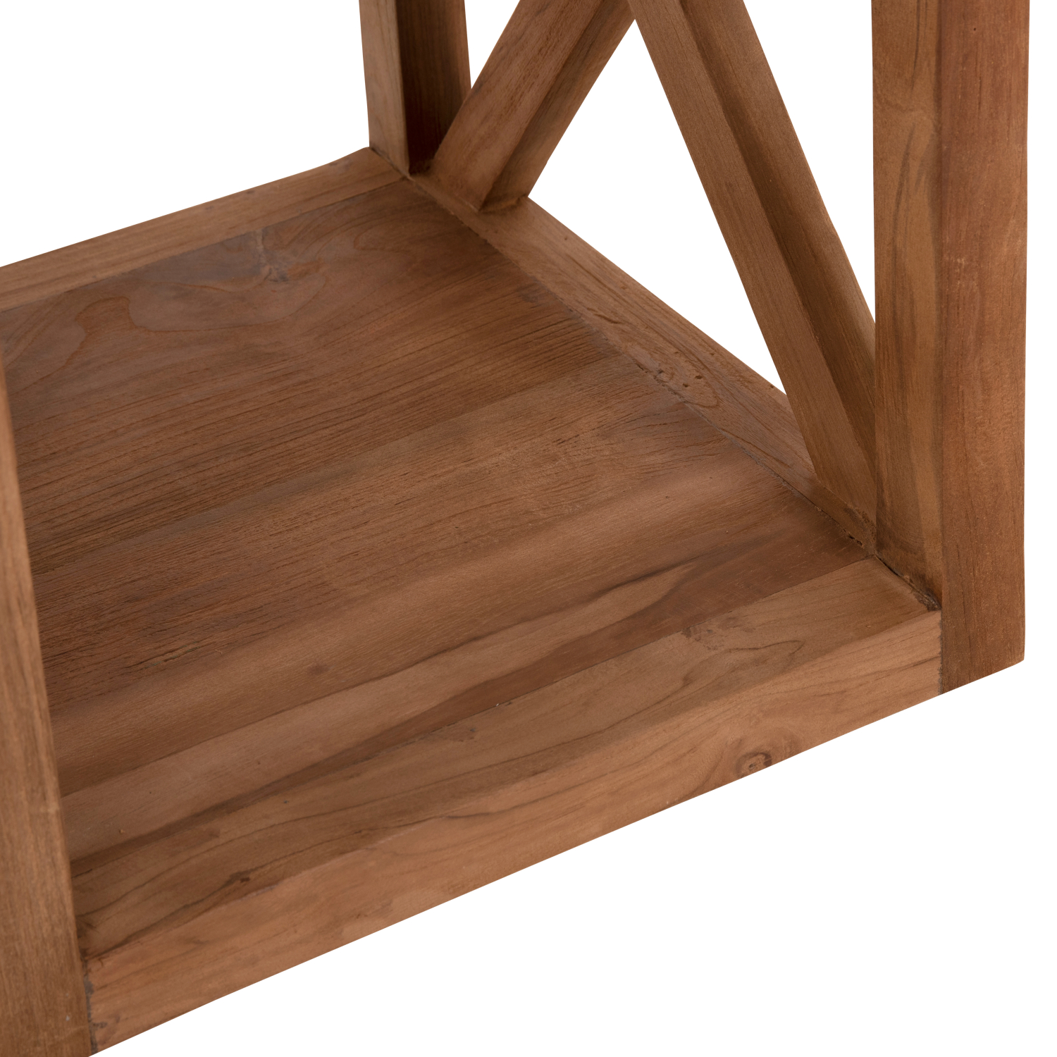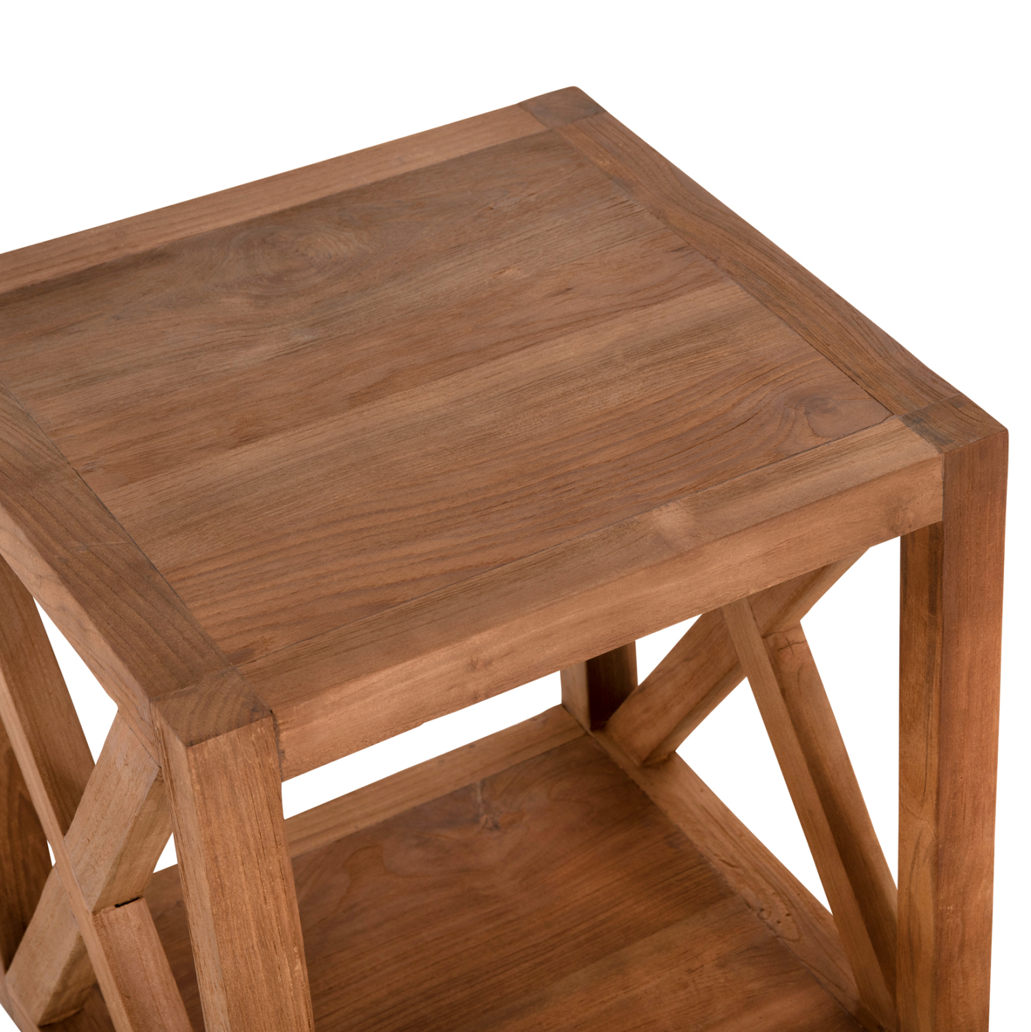 Το τραπεζάκι είναι κατασκευασμένο από ανακυκλωμένα μασίφ ξύλα ΤΕΑΚ. Όταν αναφερόμαστε σε μασίφ, εννοούμε τα ξύλα που κατασκευάζονται ολοκληρωτικά από τον κορμό δέντρου. Το μασίφ είναι η πιο ακριβή επιλογή σε είδος ξύλου αλλά ξεχωρίζει για την διαχρονική αισθητική του.
