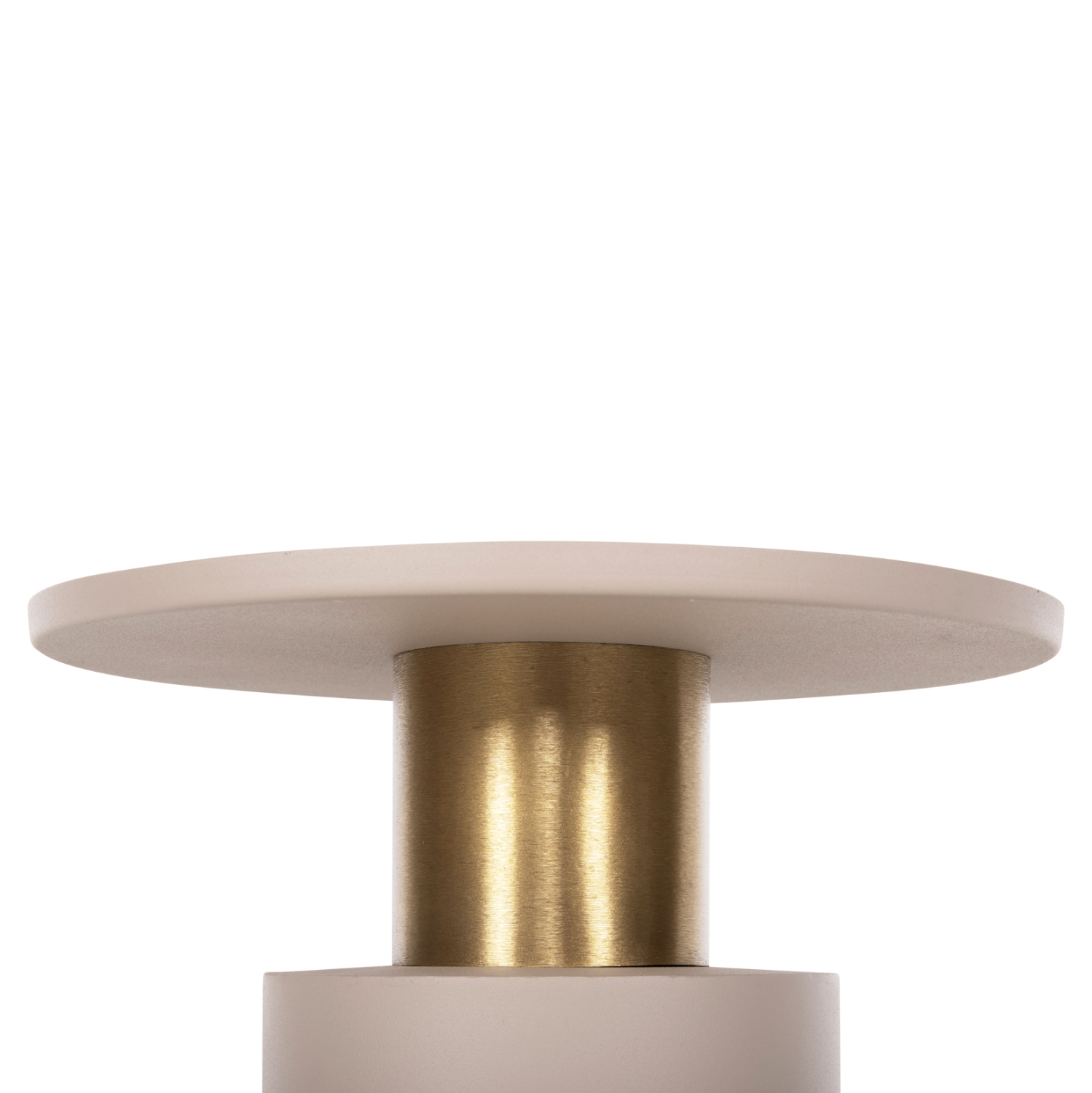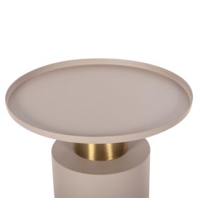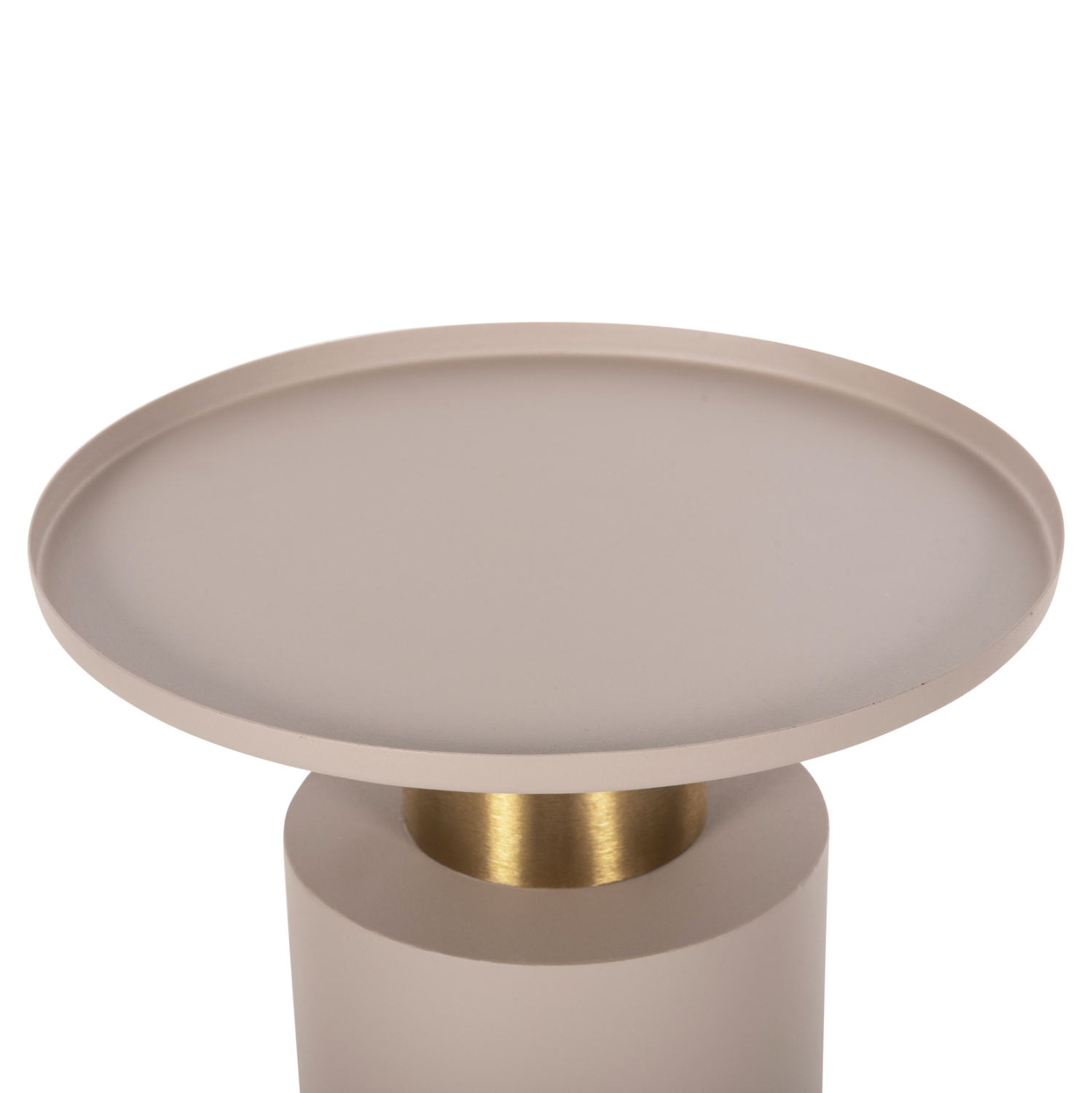 Το βοηθητικό τραπεζάκι PUNJAB για το σαλόνι είναι μια από τις νέες προσθήκες στην γκάμα μας. Πρόκειται για ένα τραπεζάκι στρογγυλό με κυλινδρική βάση και μεταλλικό. Το χρώμα του είναι ΕΚΡΟΥ όπως και η επιφάνεια, ενώ ο «λαιμός» είναι σε χρυσoχάλκινο χρώμα. Η ιδιαιτερότητα αυτού του τραπεζιού είναι οι γυαλιστερές και ματ επιφάνειες που προσδίδουν μια αίσθηση καθαρότητας και πολυτέλειας στο σαλόνι σας, όπως επίσης και ότι η περίμετρος της επιφάνειας είναι υπερυψωμένη και μοιάζει με πιάτο. Ιδανικό τόσο για το σπίτι, όσο και για επαγγελματικούς χώρους.