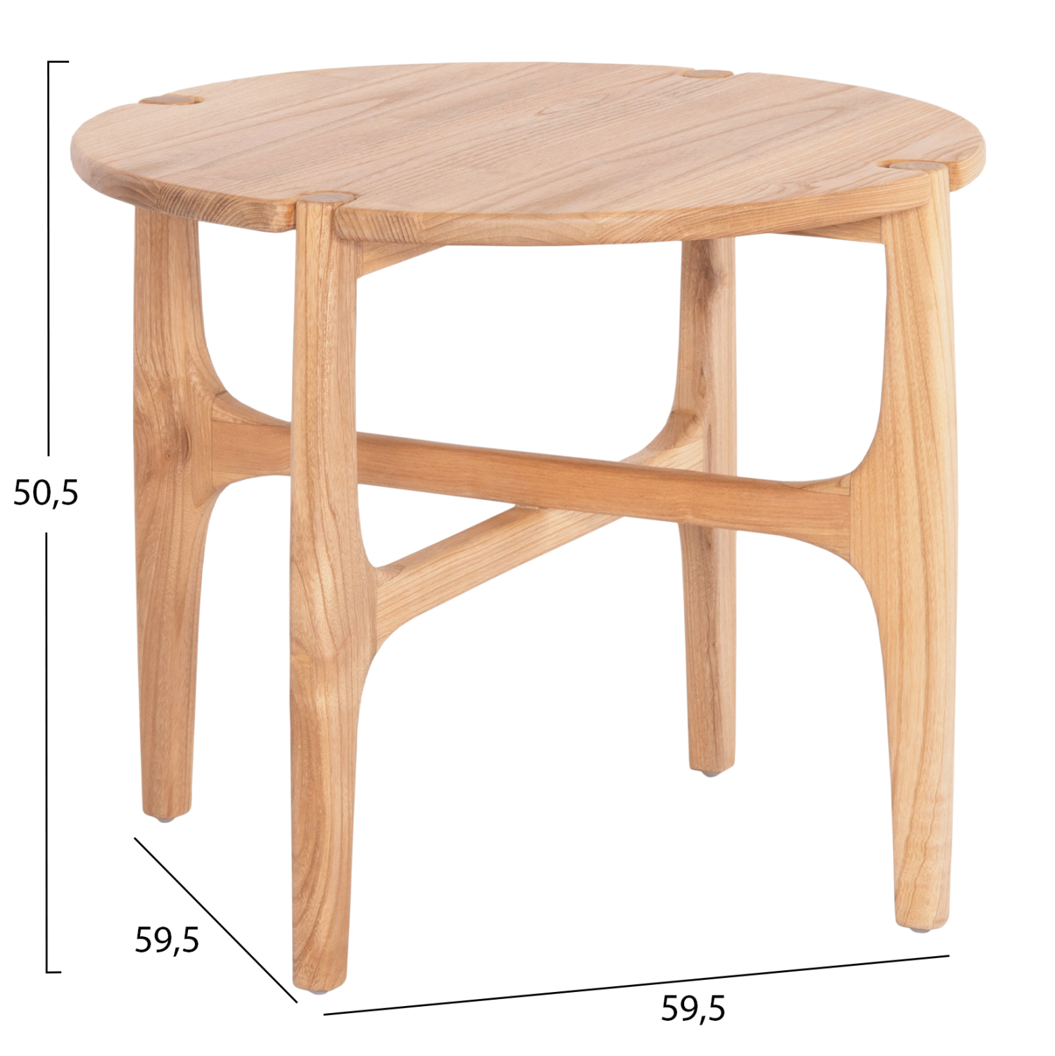 Το βοηθητικό τραπεζάκι KATAL είναι ένα στρογγυλό ξύλινο βοηθητικό τραπεζάκι σε φυσικό χρώμα ξύλου, με τέσσερα πόδια σε χιαστί διάταξη.